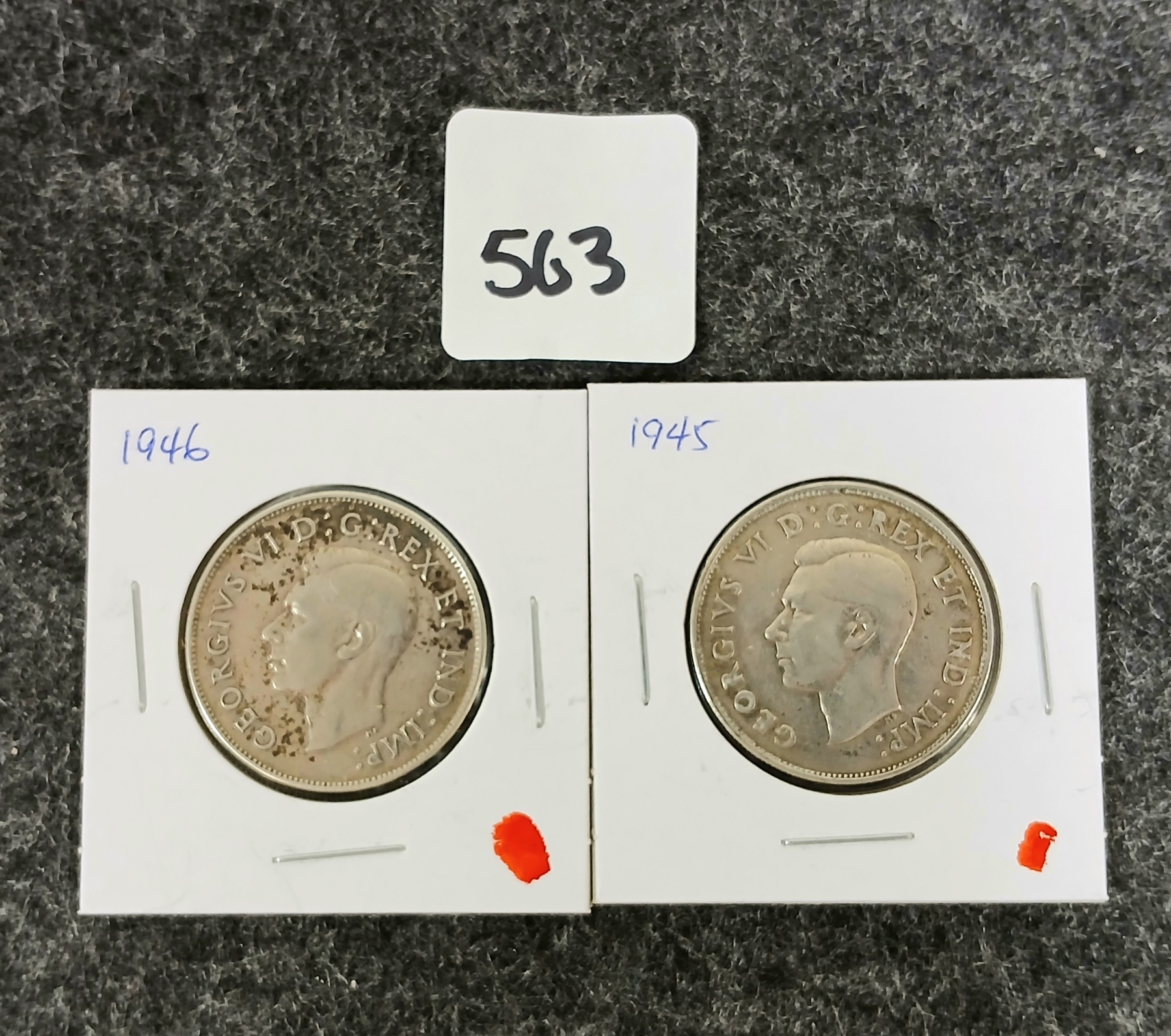 Lot 563 LOT OF 2 - 1945 & 1946 CDN SILVER 50 CENT COINS