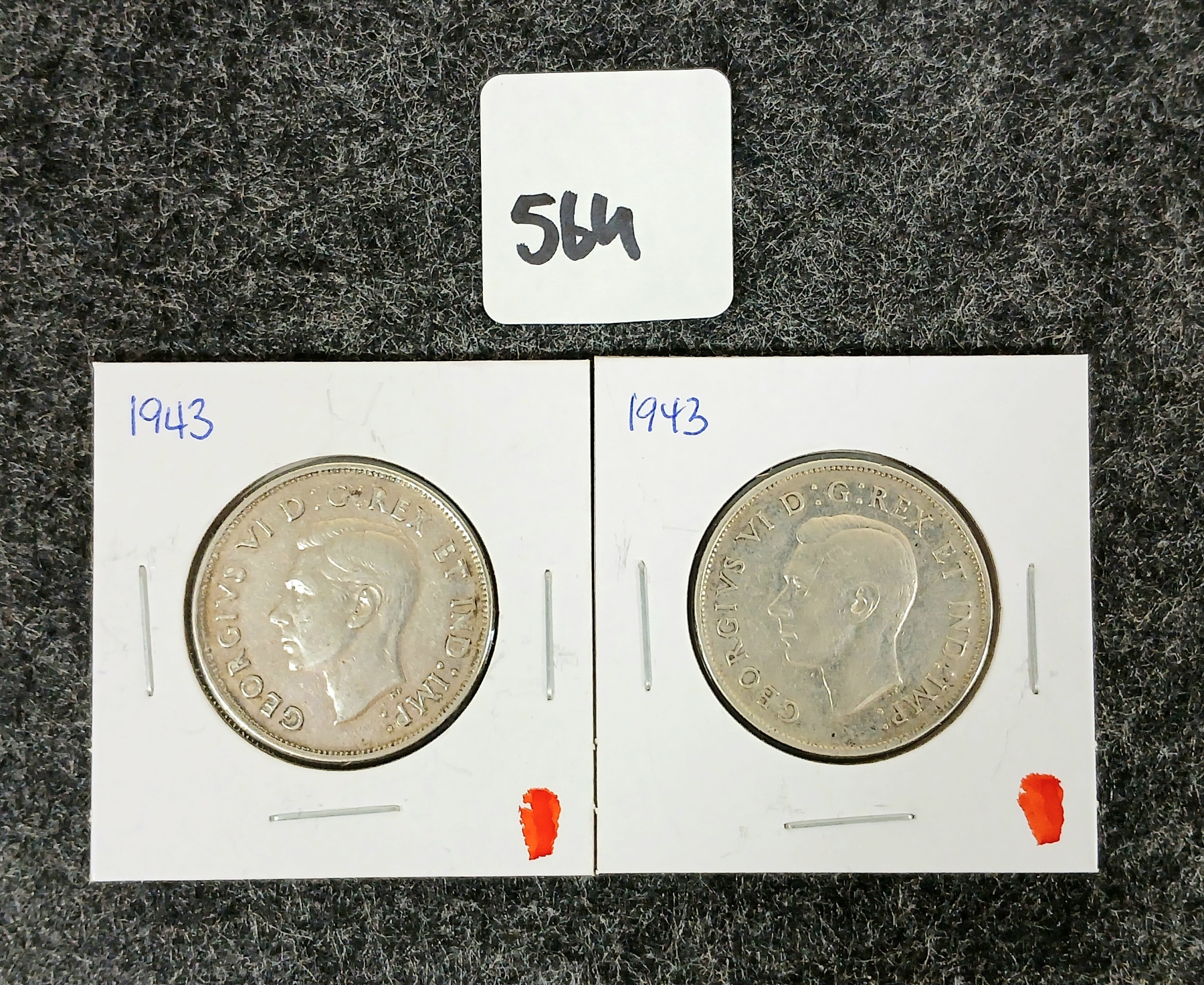 Lot 564 LOT OF 2 - 1943 CDN SILVER 50 CENT COINS