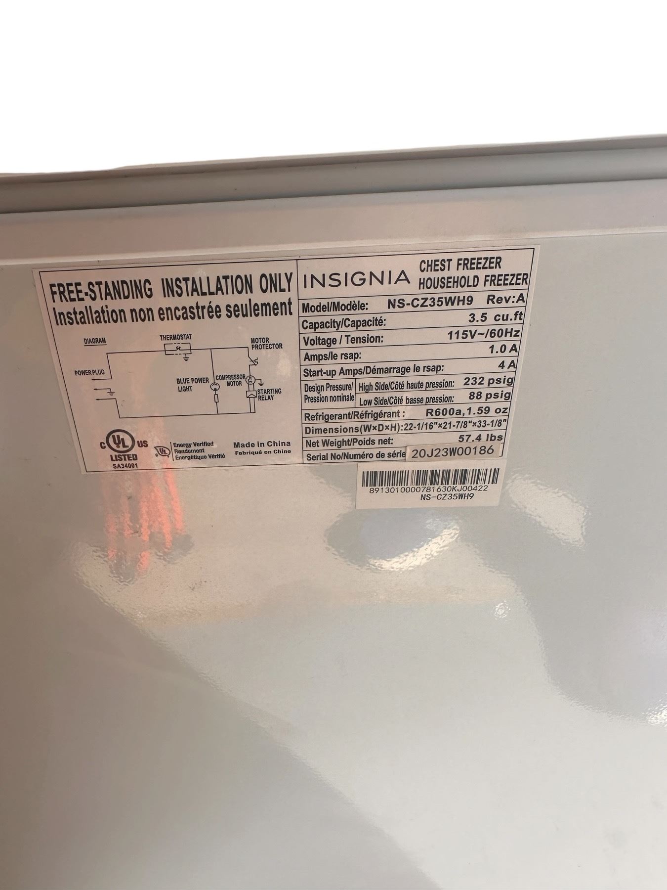 Insignia Chest Freezer NS-CZ35WH9 (3.5 Cubic Feet)