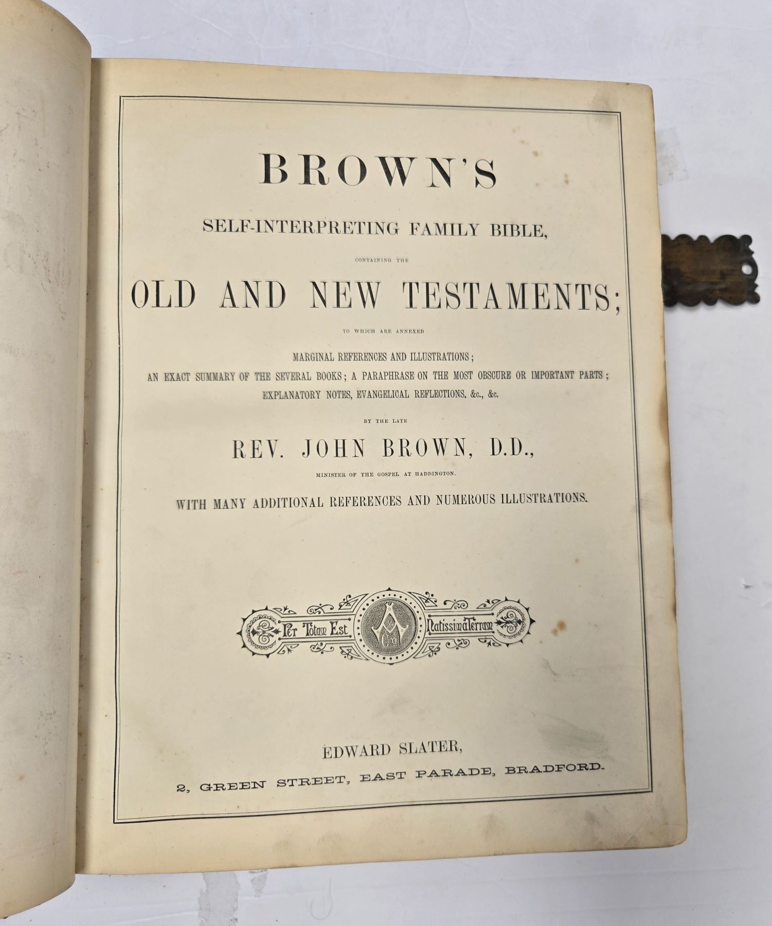 Lot 22 Large Leather Bound Antique Bible (Brown's Family Edition with Old and New Testament)