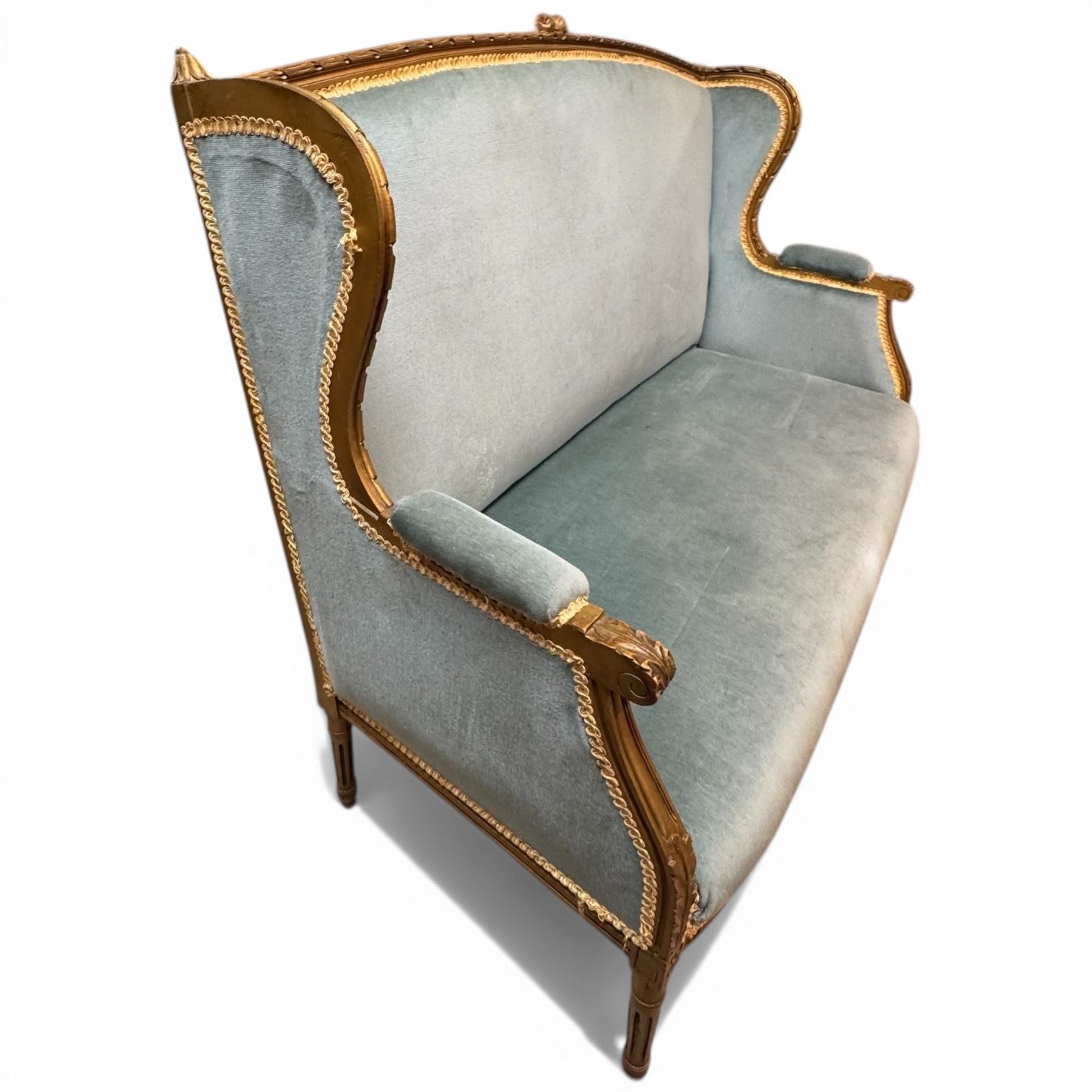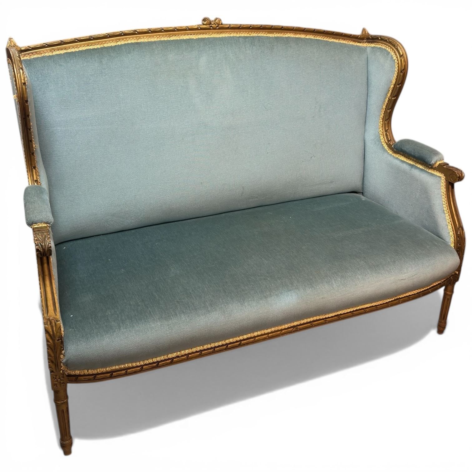 Lot 6 Louis XVI Style Blue Velvet Sofa (49" Long)