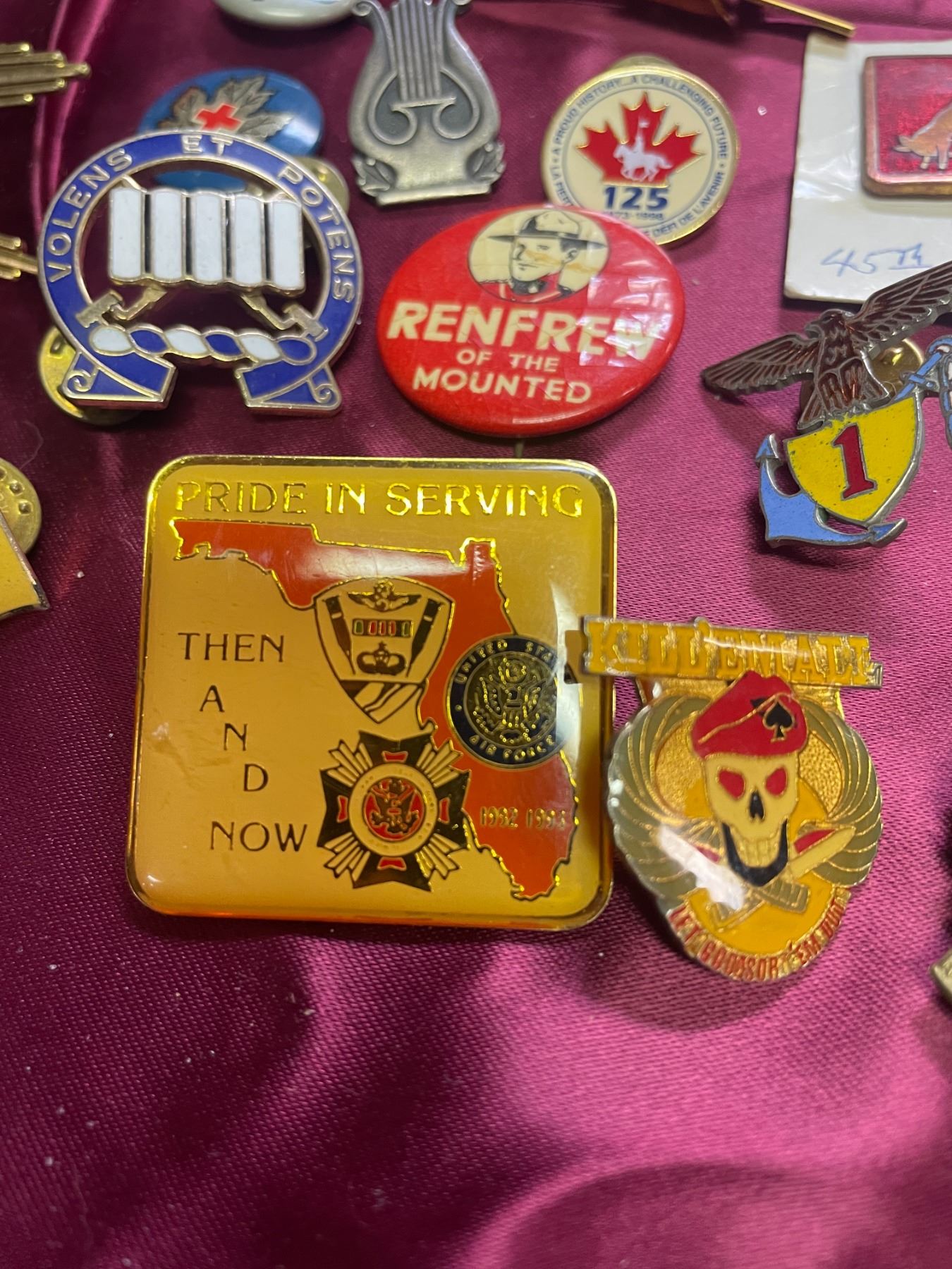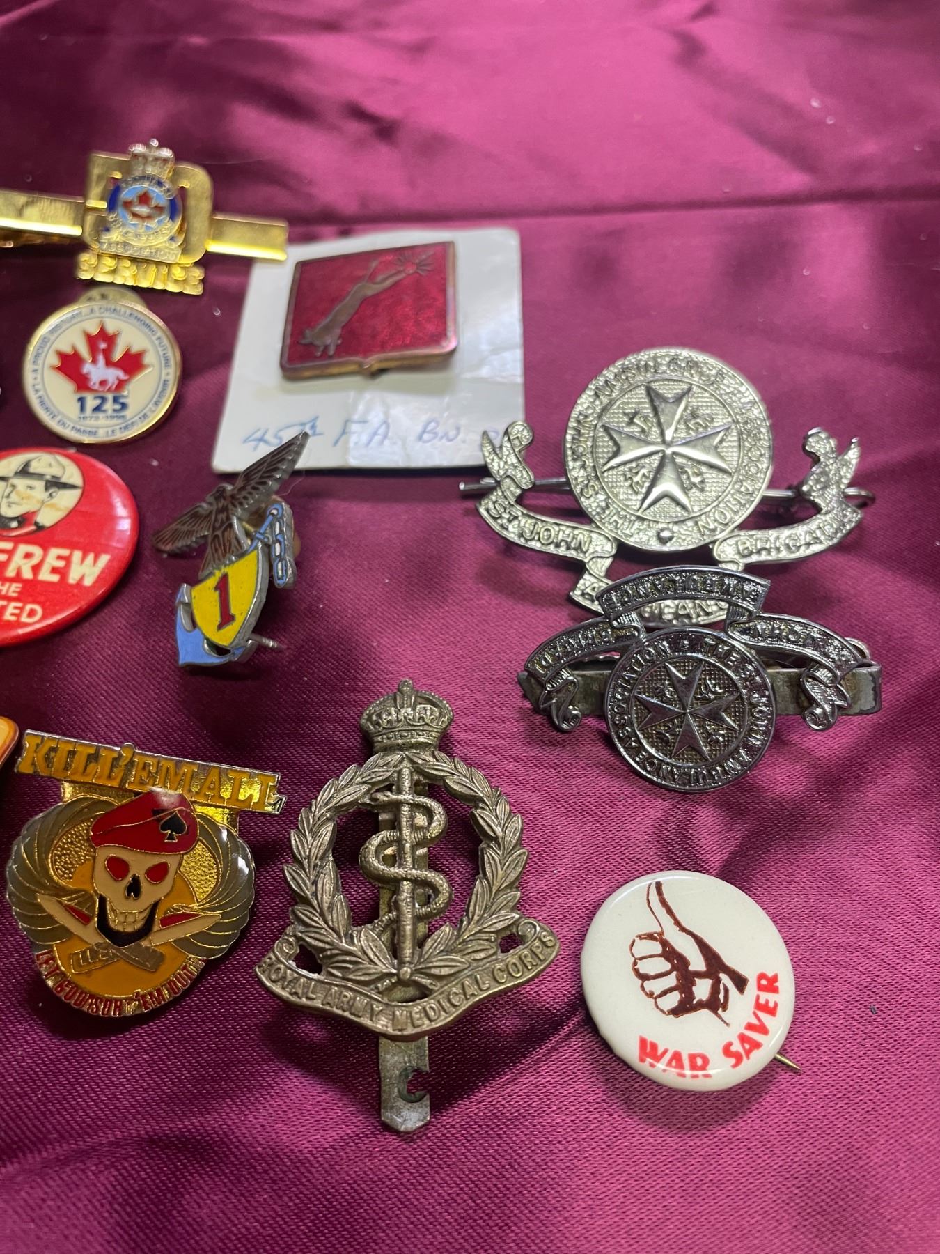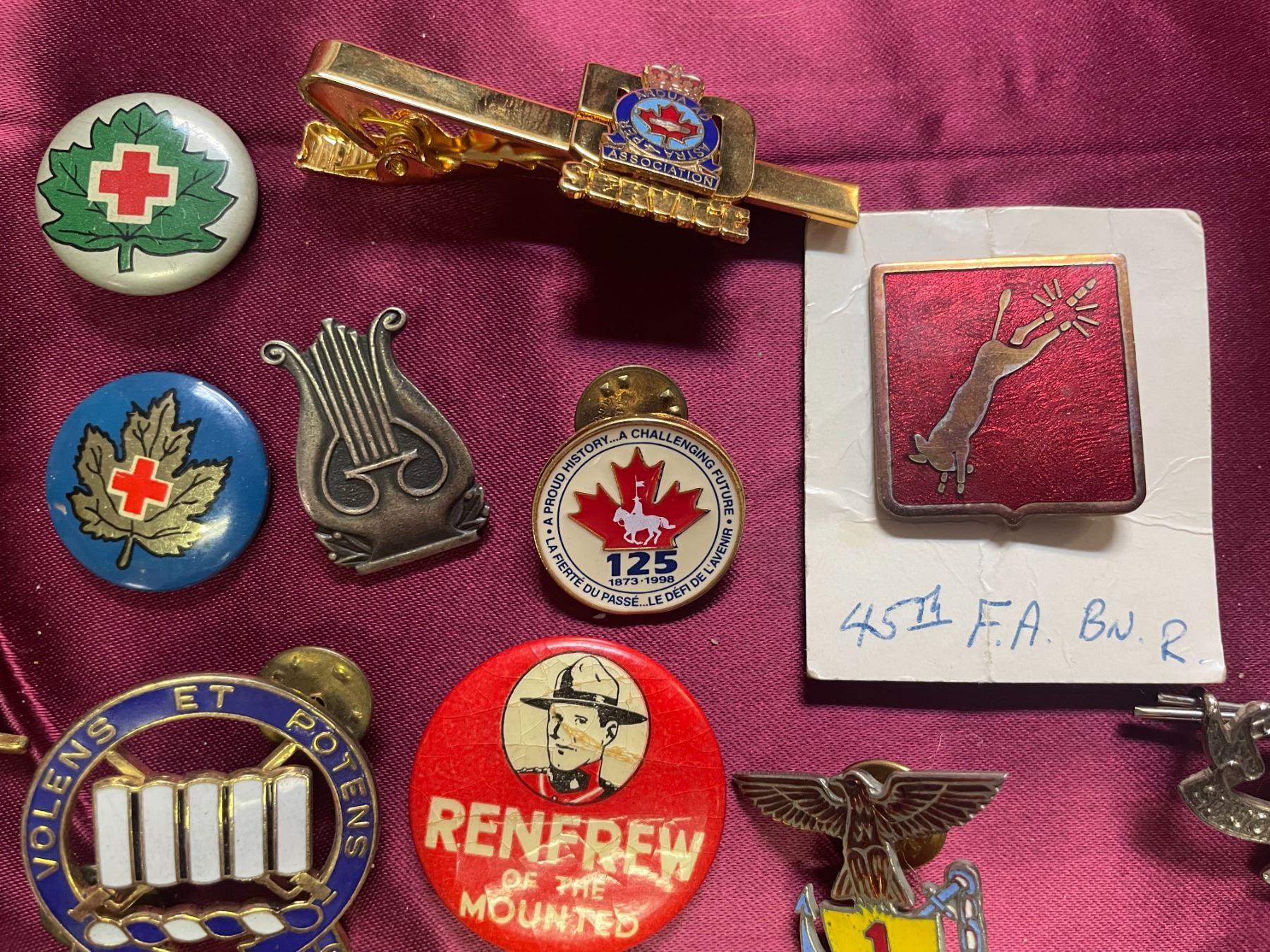 vintage lapel pins and badges includes items related to military service, specifically featuring Royal Canadian Legion badges and potentially era-specific insignia