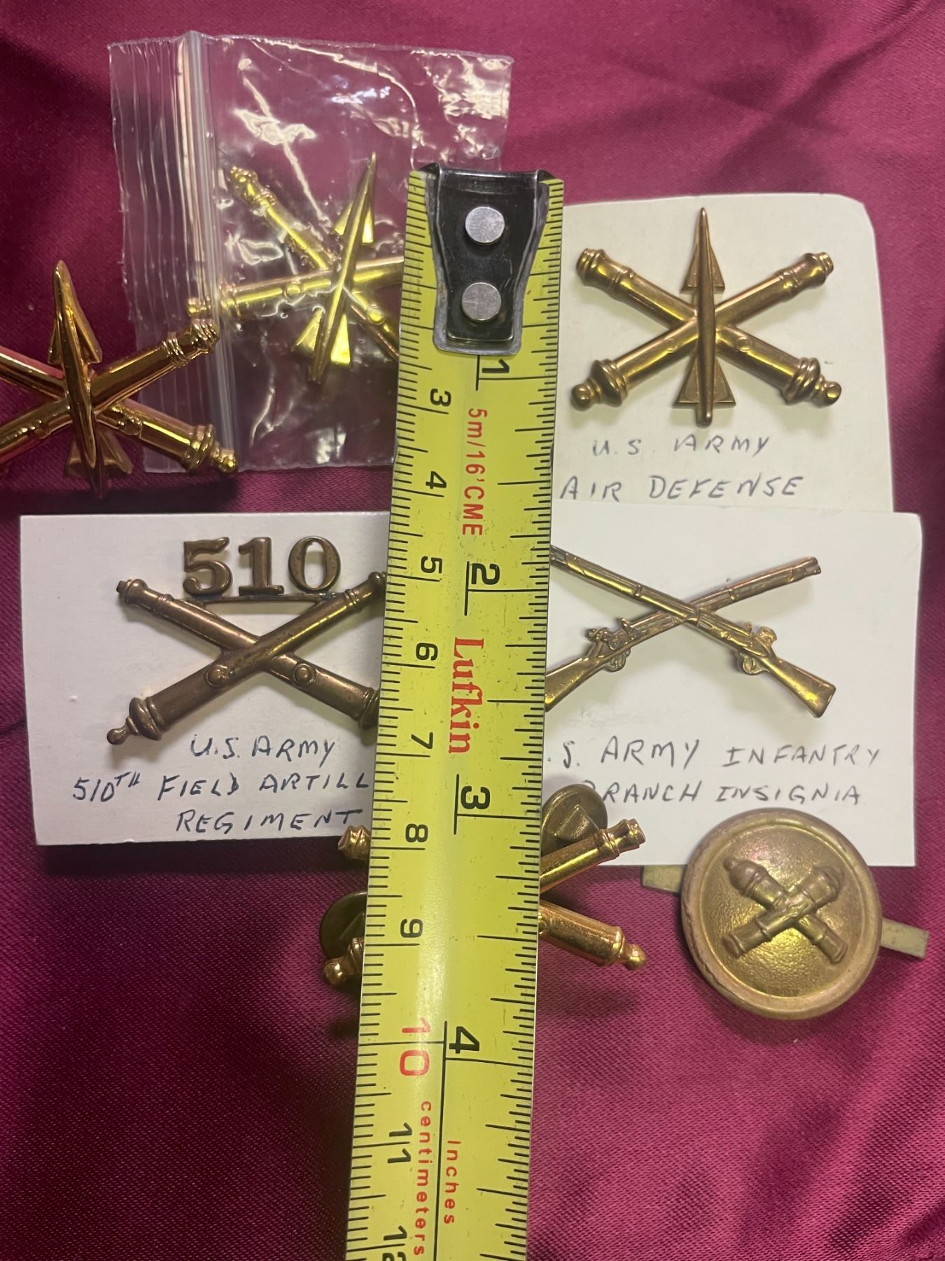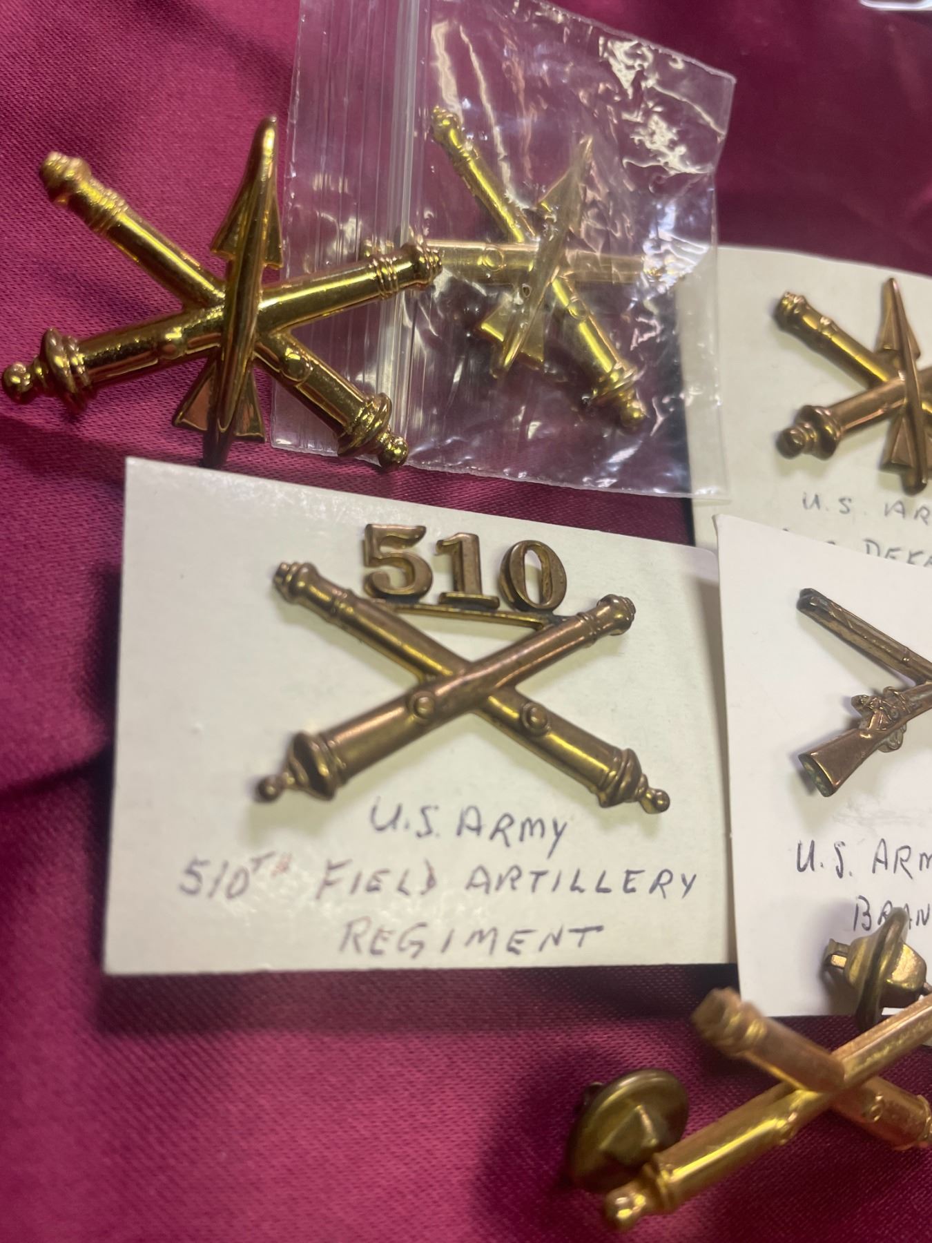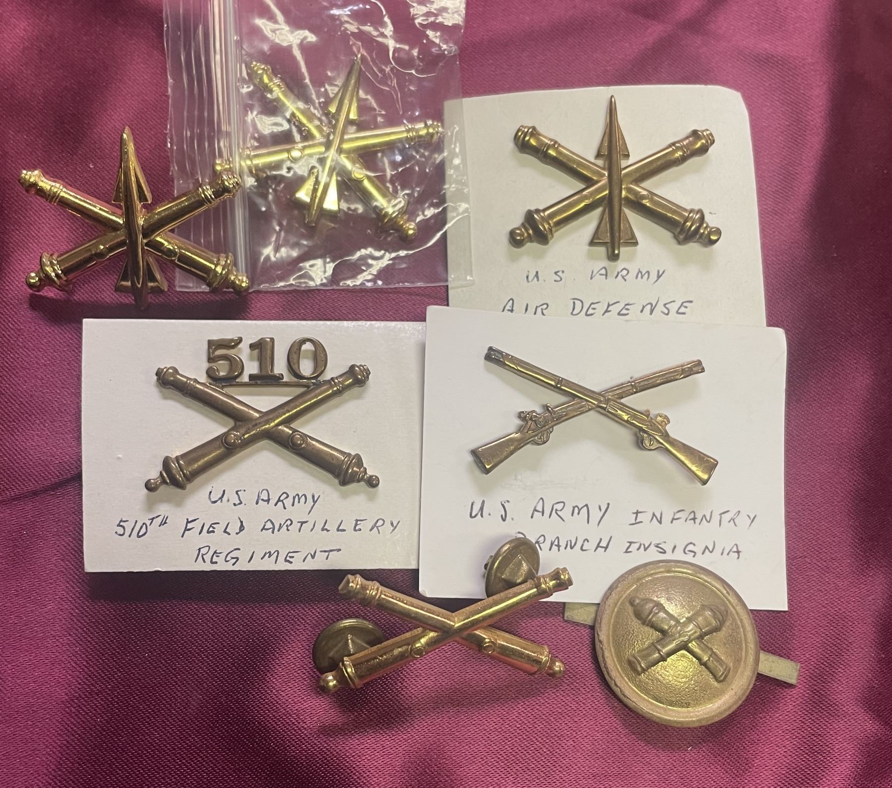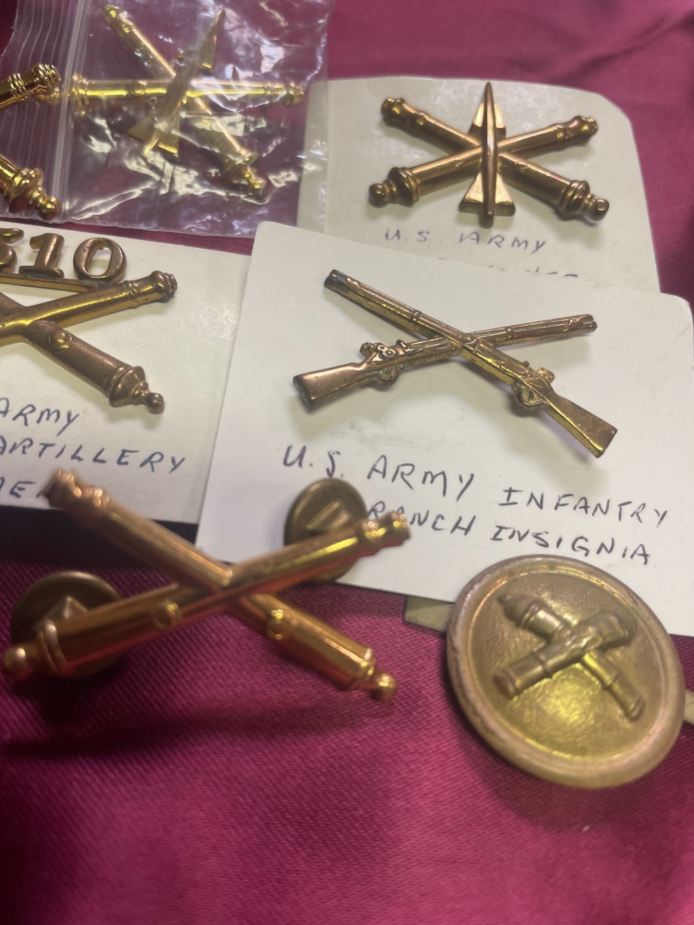 Lot 305 collectibles features vintage US Army military collar insignia pins