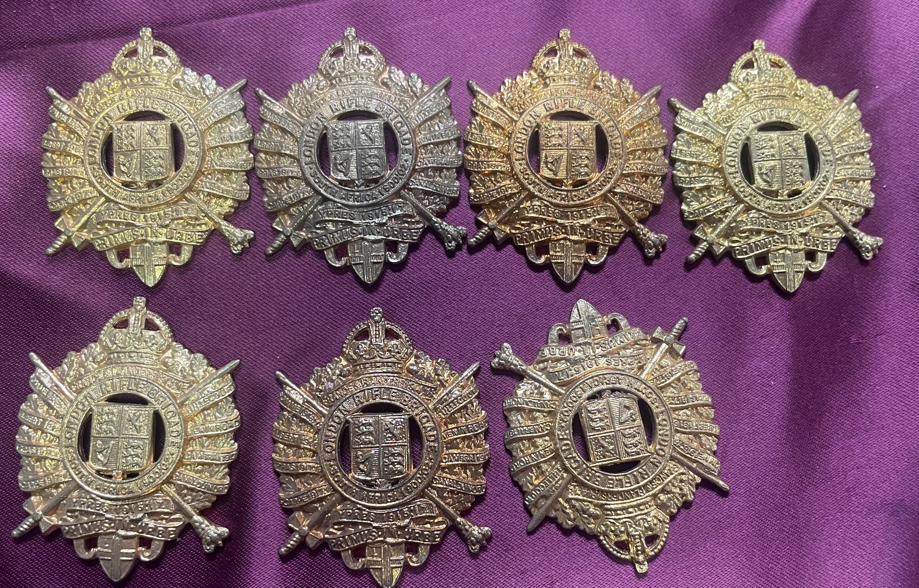 Lot 315 cap badges from the London Rifle Brigade, specifically the 5th City of London Battalion.