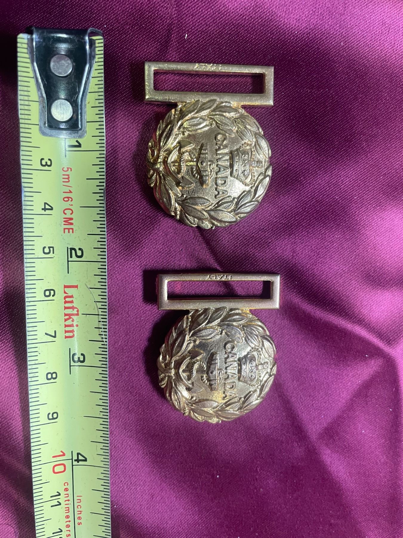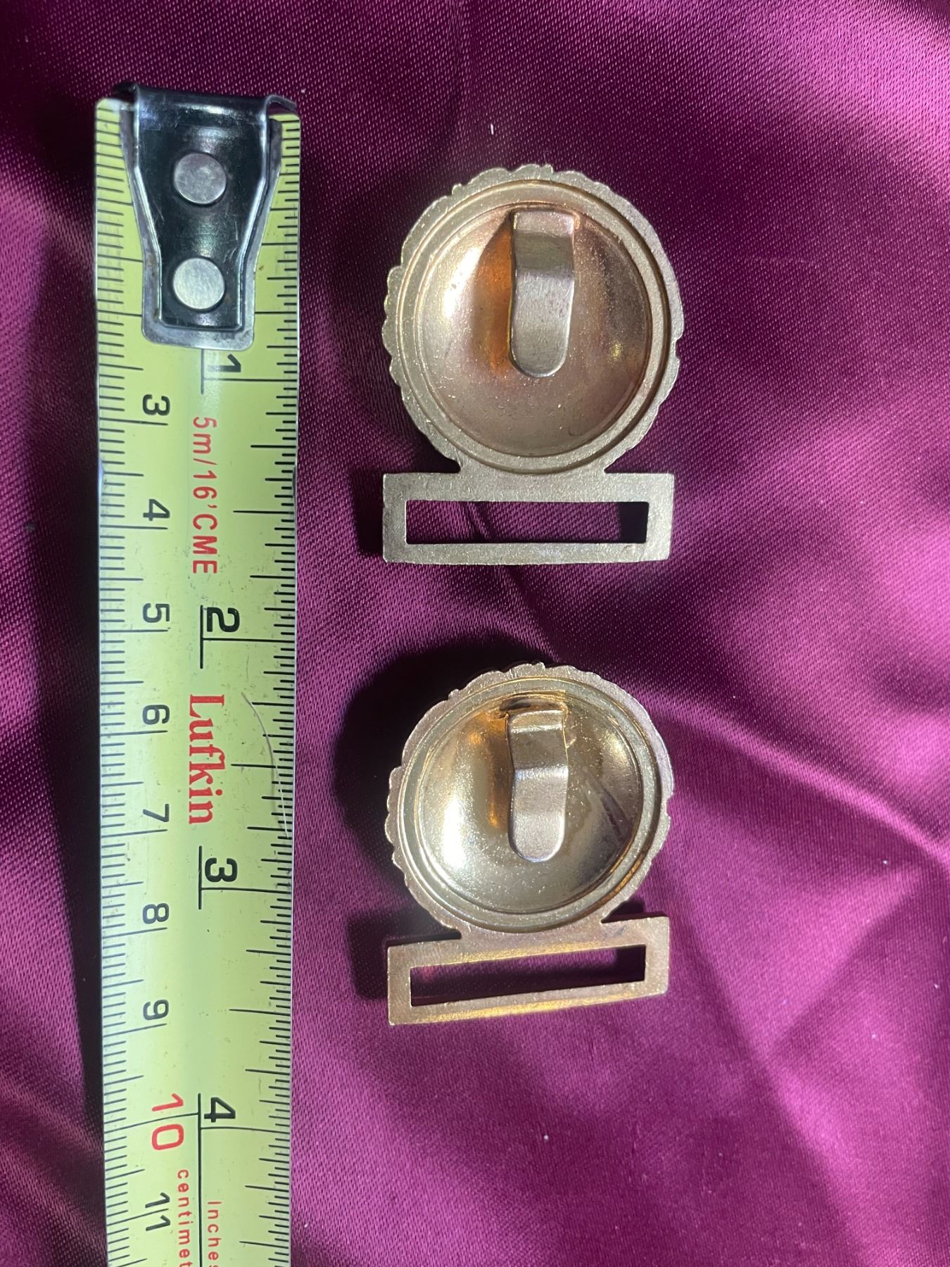 Type: Two-piece brass military belt buckles (wreath and tongue design)