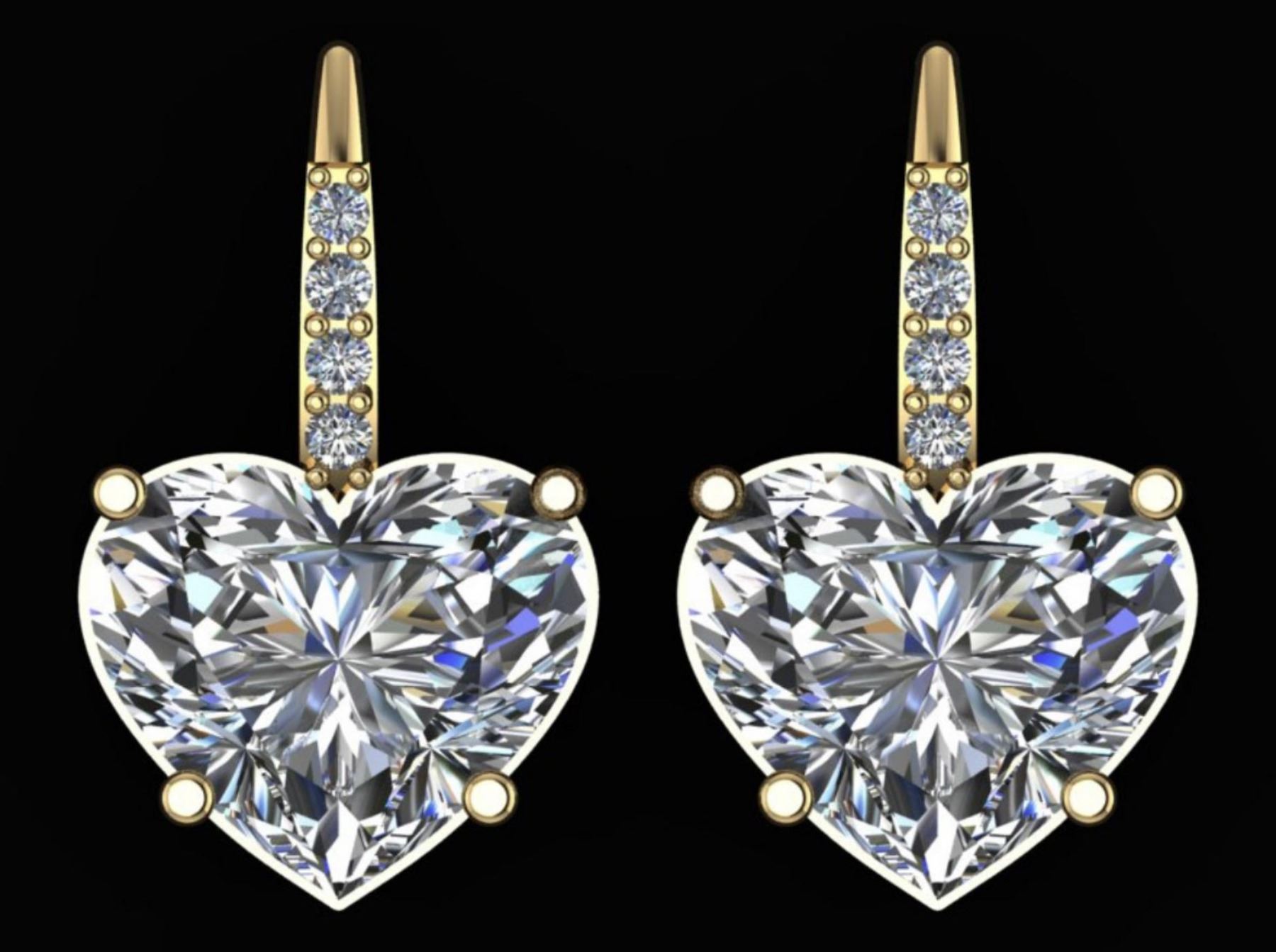Lot 8277 Gold & White Heart Diamond 4.25 Cts Earrings