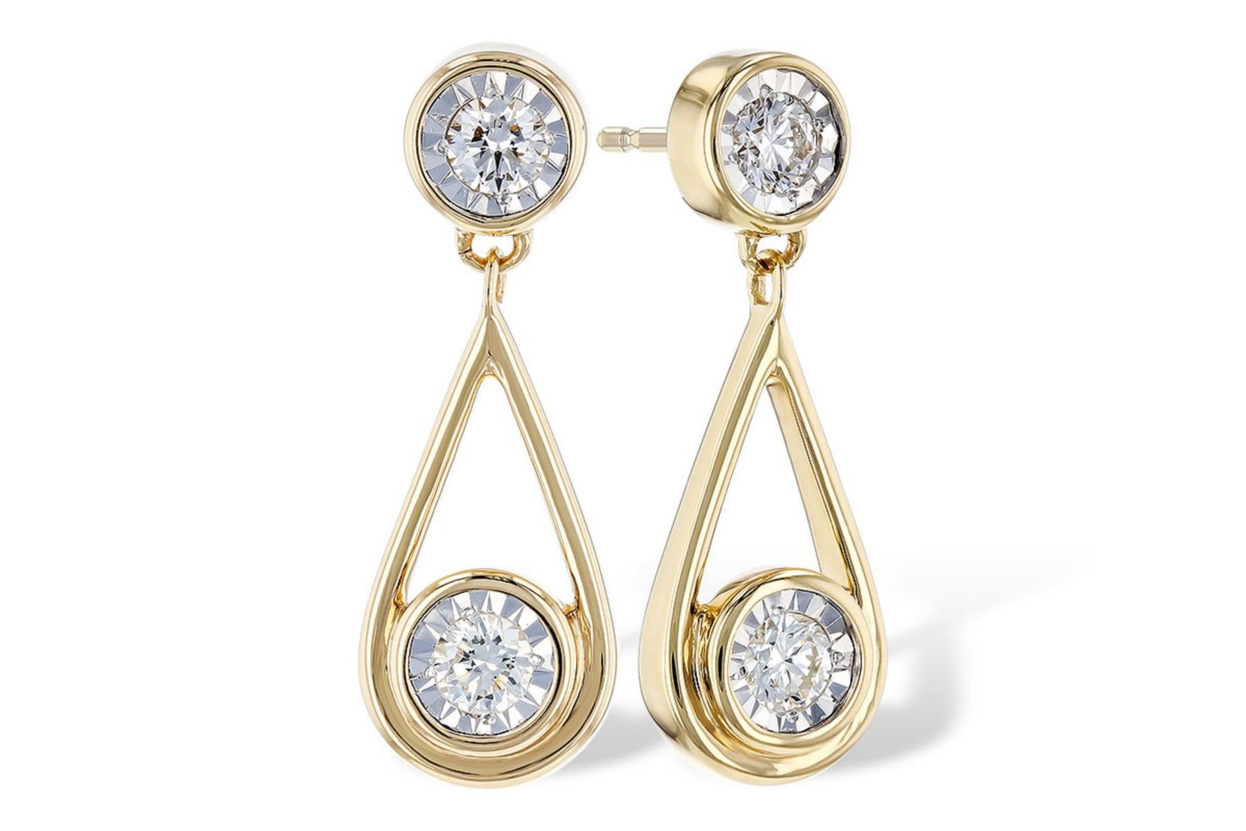 Lot 8328 Gold & White Diamond 5 Cts Drop Earrings