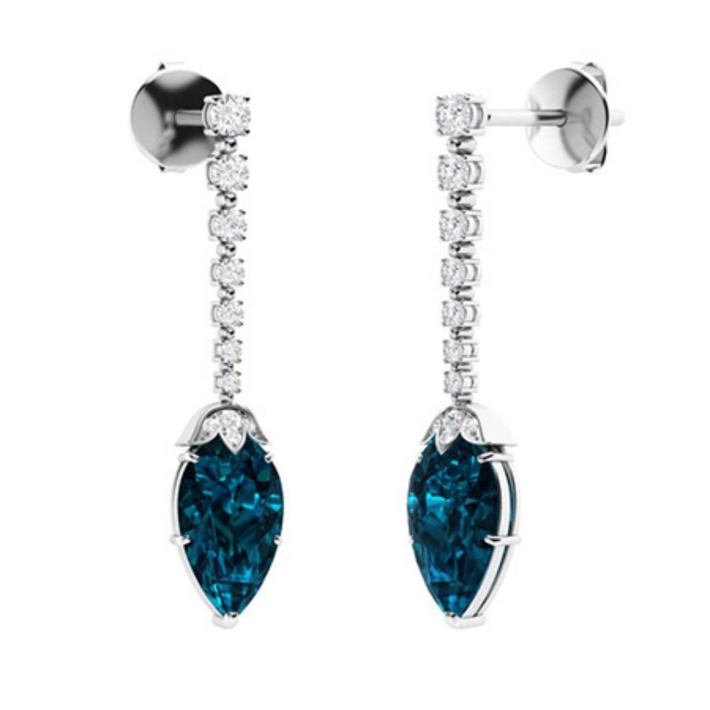 14k Gold (You may choose yellow, white or Rose Gold) , Natural London Topaz 5.00 Cts Lab Diamonds 2.00 Cts - E-F-G/ VVS-VS; .( All Our Diamonds are Guarnteed authentic Lab Grown Diamonds)( Note - 7 days shipping time after the payment received) Matching Pendant and ring can also be made at additional cost.(This London Topaz also can be replaced with diamonds or any other colored stones example - swiss topaz, garnet, amethyst or citrine etc- please confirm with us the cost if you like any other stone replacemnt)