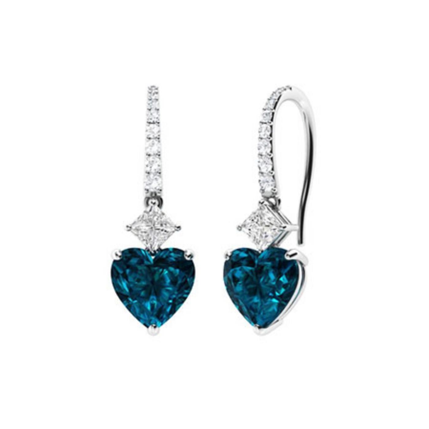 Lot 8371 Gold Natural Hearts London Topaz Diamonds Drop EarRings