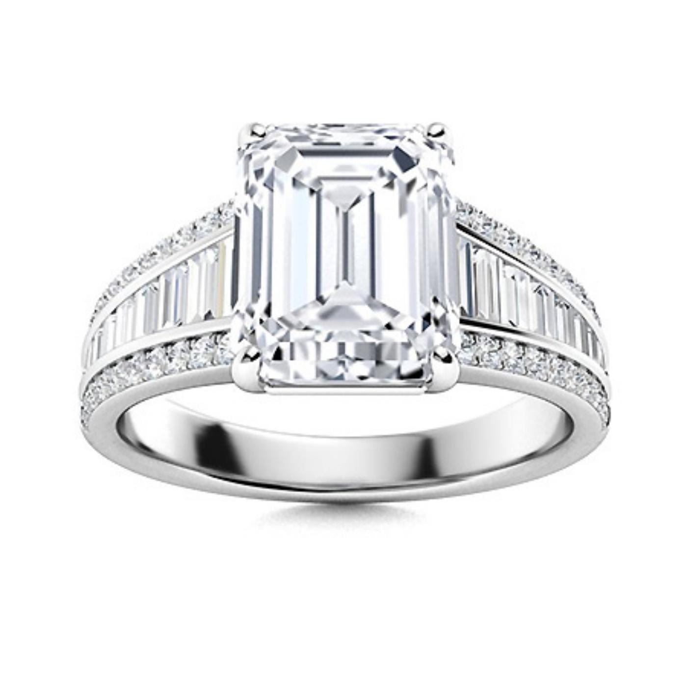 Lot 8414 Gold & Lab Octagon Diamond 3.50 Cts Ring - E/VVS
