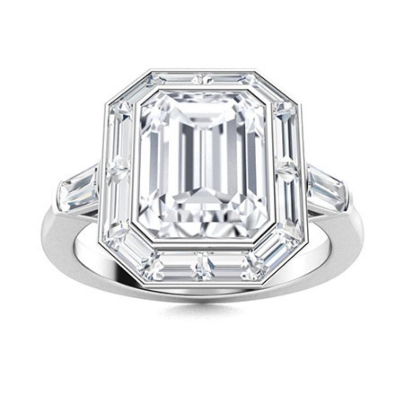 Lot 8443 Gold White Octagon Diamond 3.50 Cts Ring - E/VVS