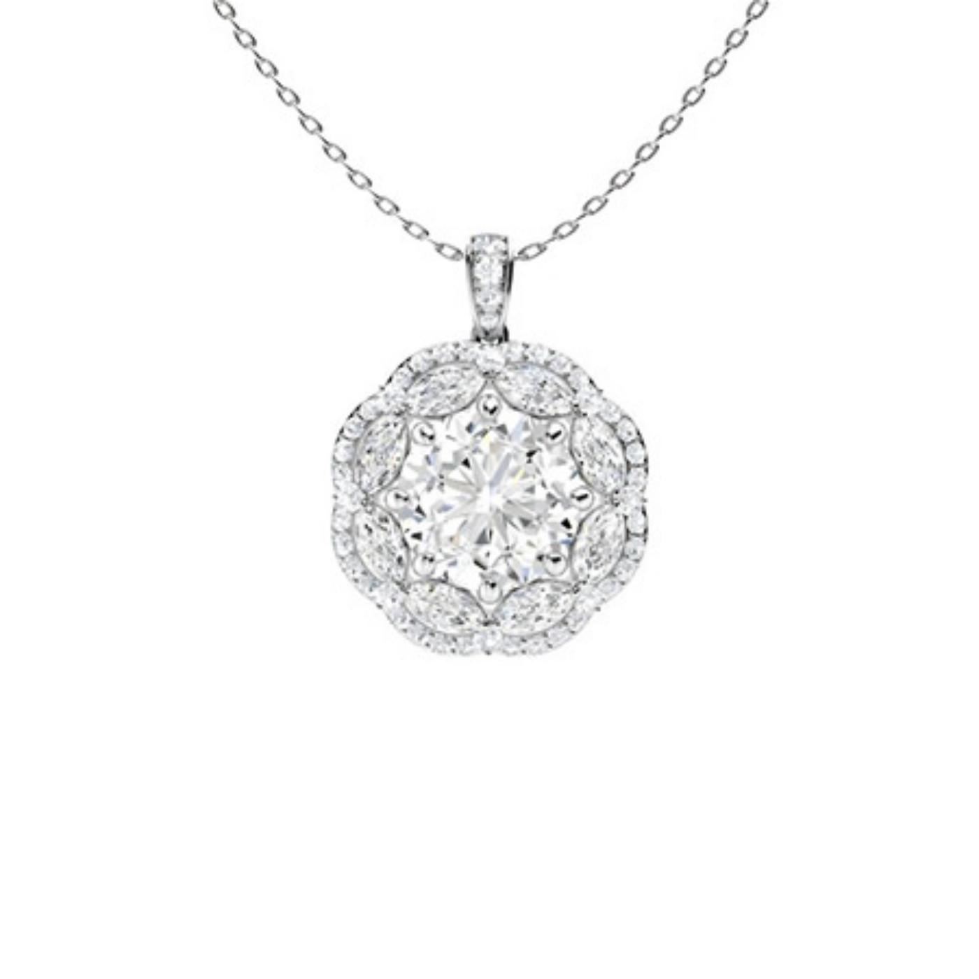 14k Gold (You may choose yellow, white or Rose Gold) Chain lenth 18 Inches, Lab Diamond 4 Cts Necklace with chain....; Clarity E-F-G/VVS-VS.....IGI Certified.( All Our Diamonds are Guarnteed authentic Lab Grown Diamonds) -7 days shipping time after the payment received)