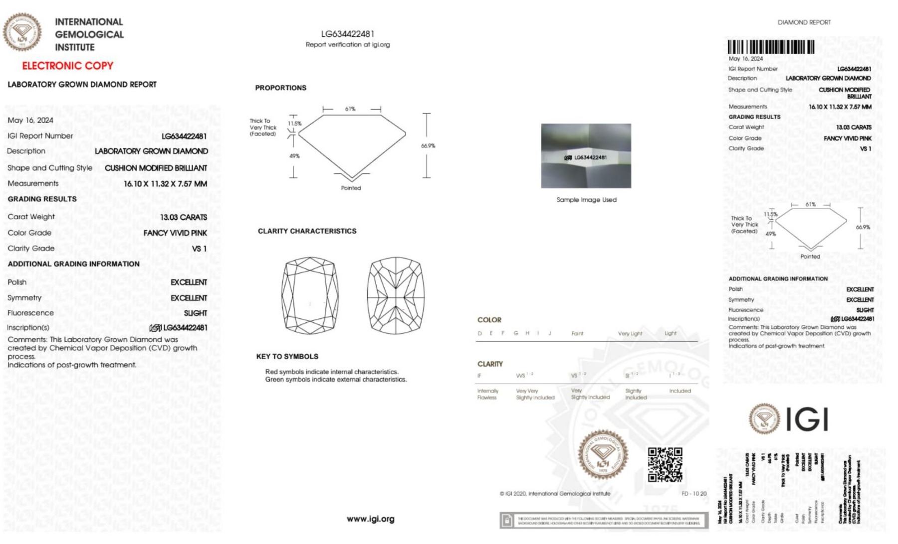 Fancy Vivid Pink Diamond 13.03 Cts - VS Clarity; IGI lab ----Laser Inscription: IGI Number Laser Inscription on Girdle( All Our Diamonds are Guarnteed authentic Lab Grown Diamonds) (Stock Ref---US330-FD)
