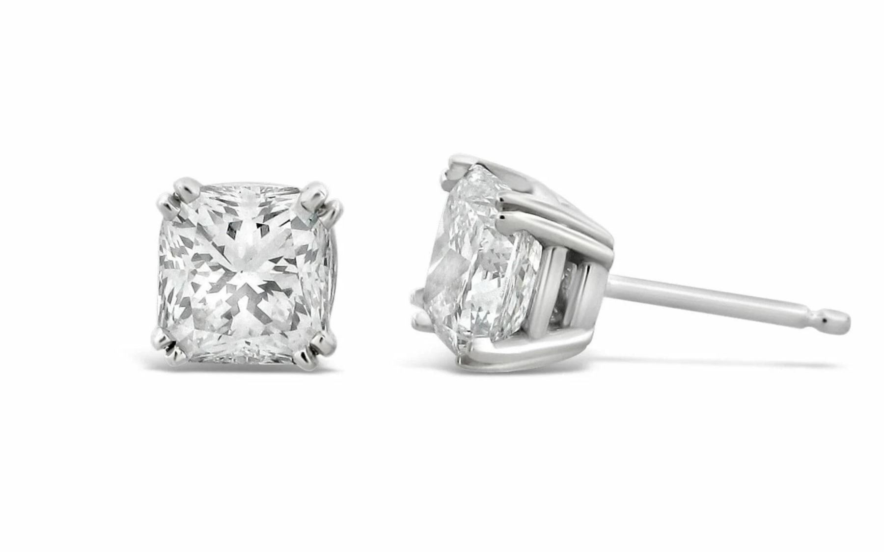 14k W Gold (You may choose yellow, white or Rose Gold)Lab Cushion Diamond 2.00 Cts Earrings Studs....; Clarity E-VVS.....IGI Certified.. ( All Our Diamonds are Guarnteed authentic Lab Grown Diamonds)