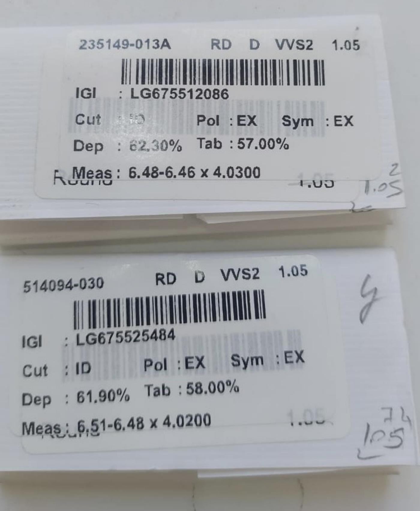 Lot 8733 Gold & White Diamond 2.10 Cts D/VVS EarStuds - IGI Cerified