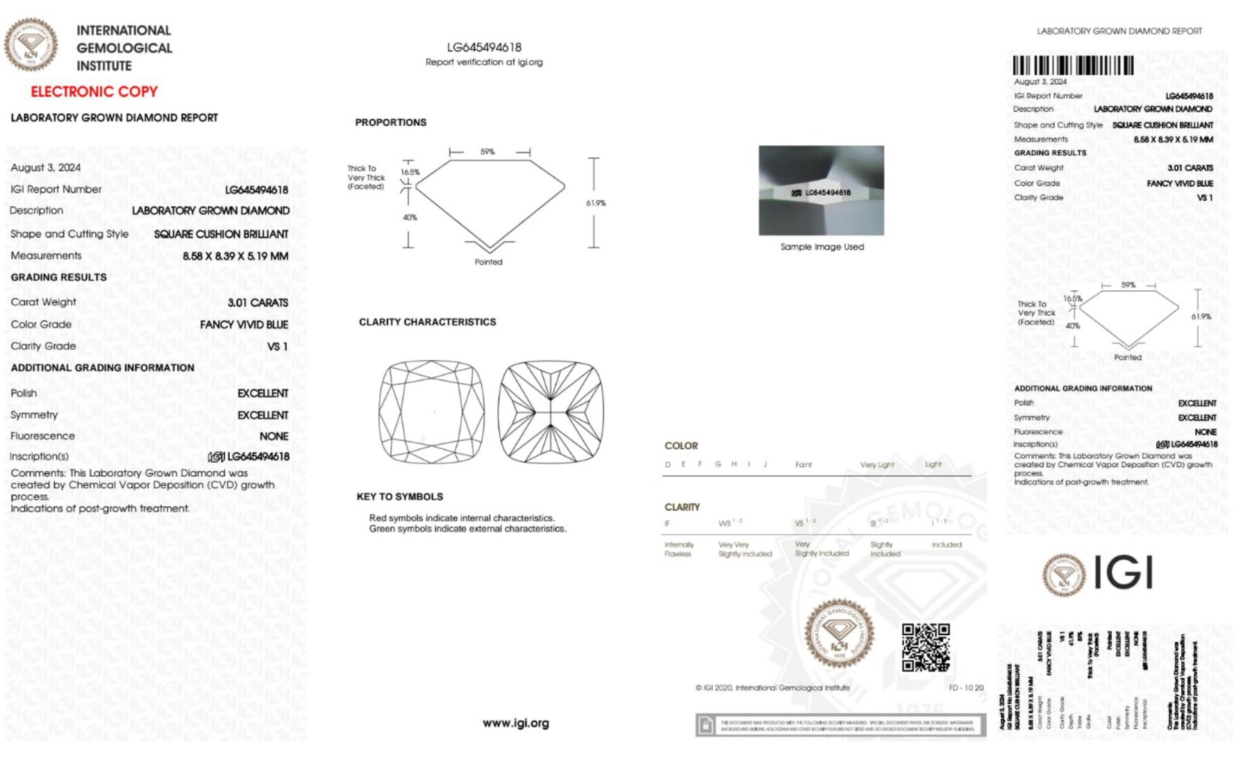 Lot 8736 Fancy Vivid Blue Diamond 3.01 Cts - VS - IGI Certified