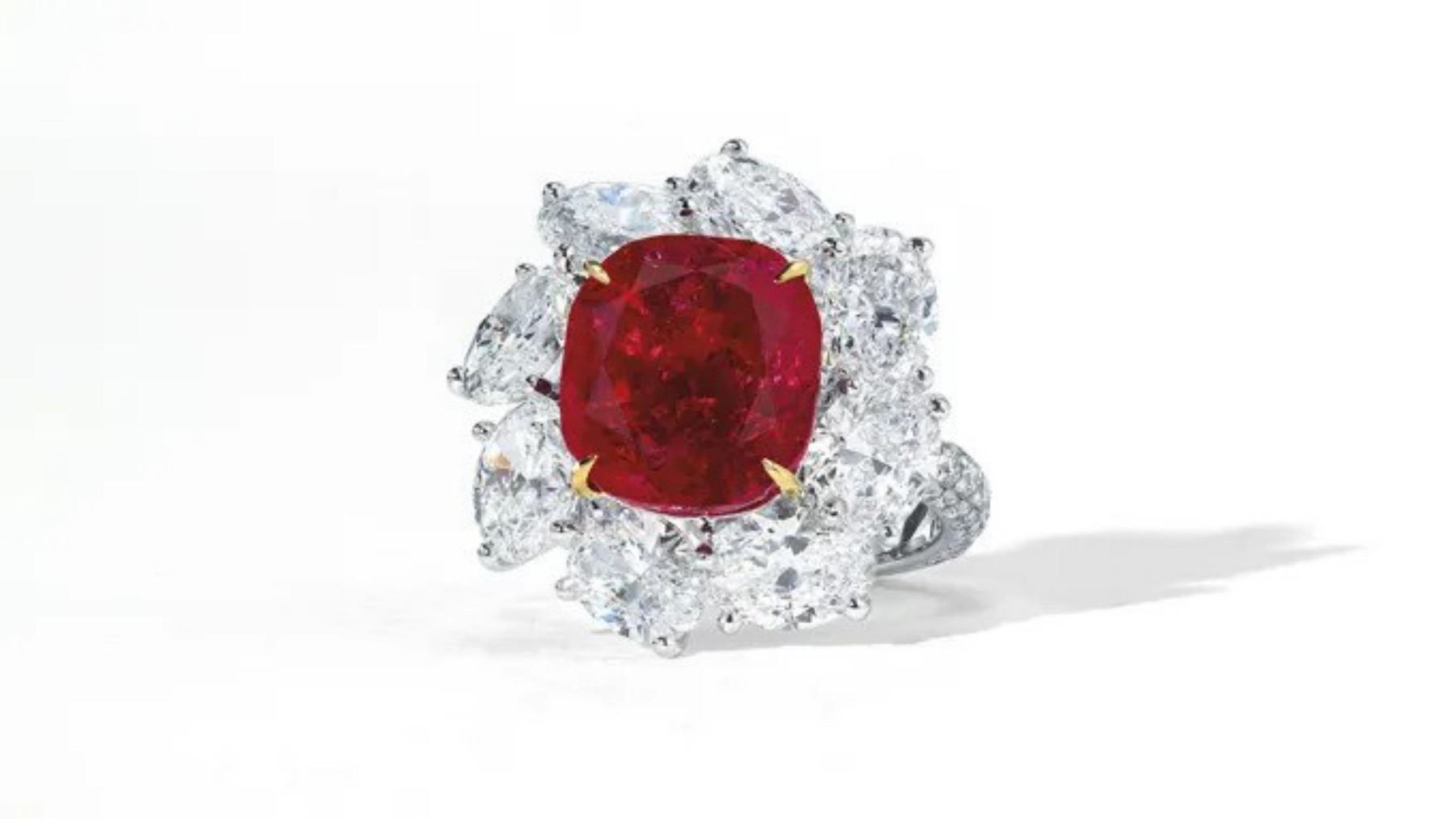 Lot 8756 Gold & Pigeon Blood Red Ruby & Diamonds Ring