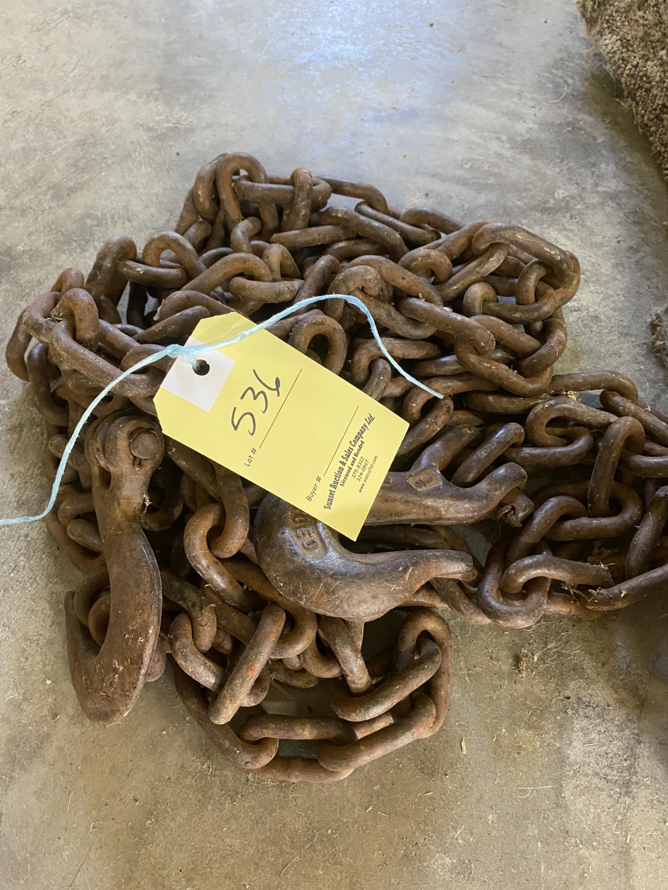 Lot 536 APPROX. 25 FT 1/2 INCH CHAIN WITH 2 HOOKS