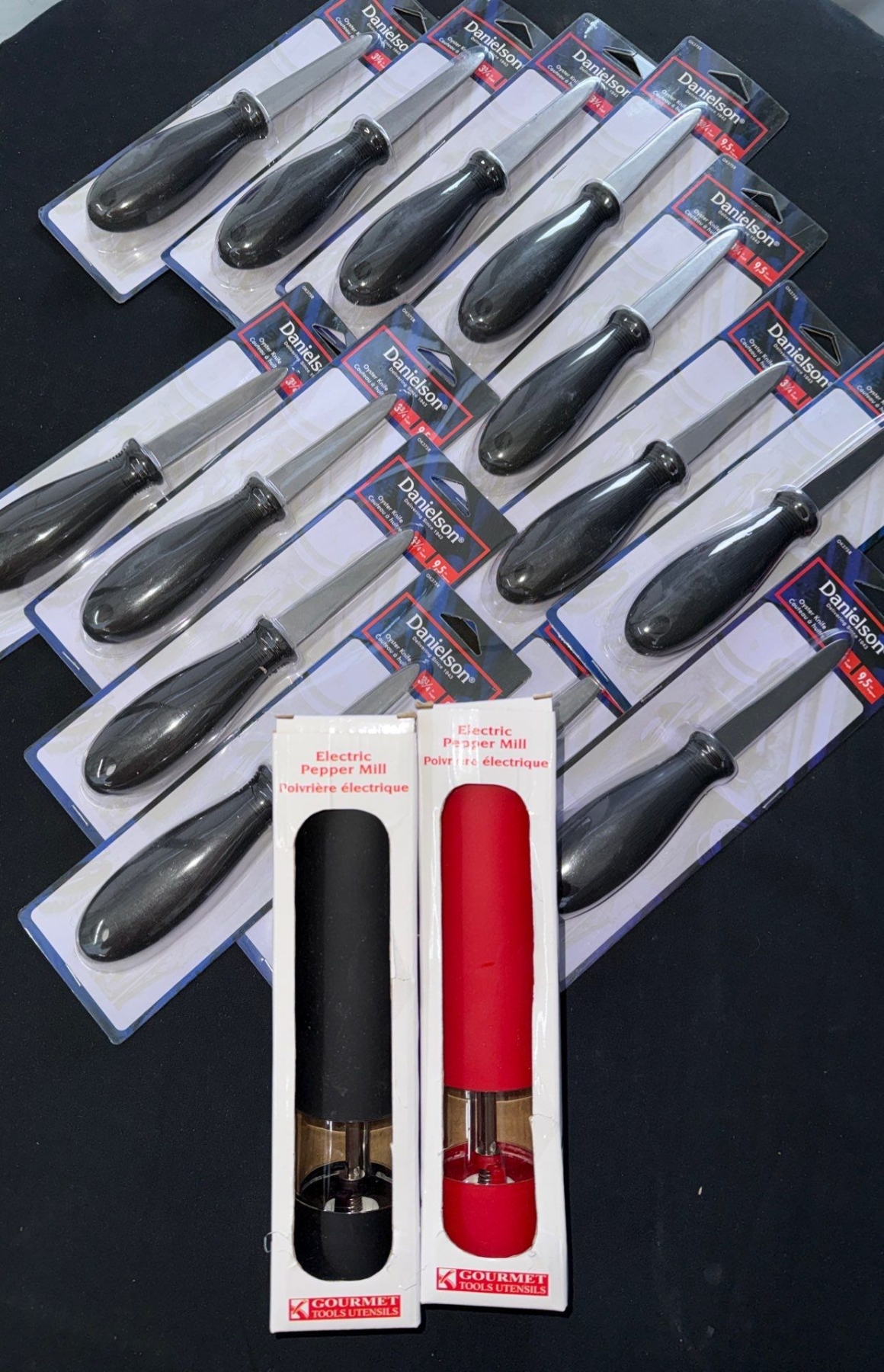Lot 61 Oyster Shuckers Essentials - New Electronic Salt & Pepper Mills w/ Oyster Shucking Knives