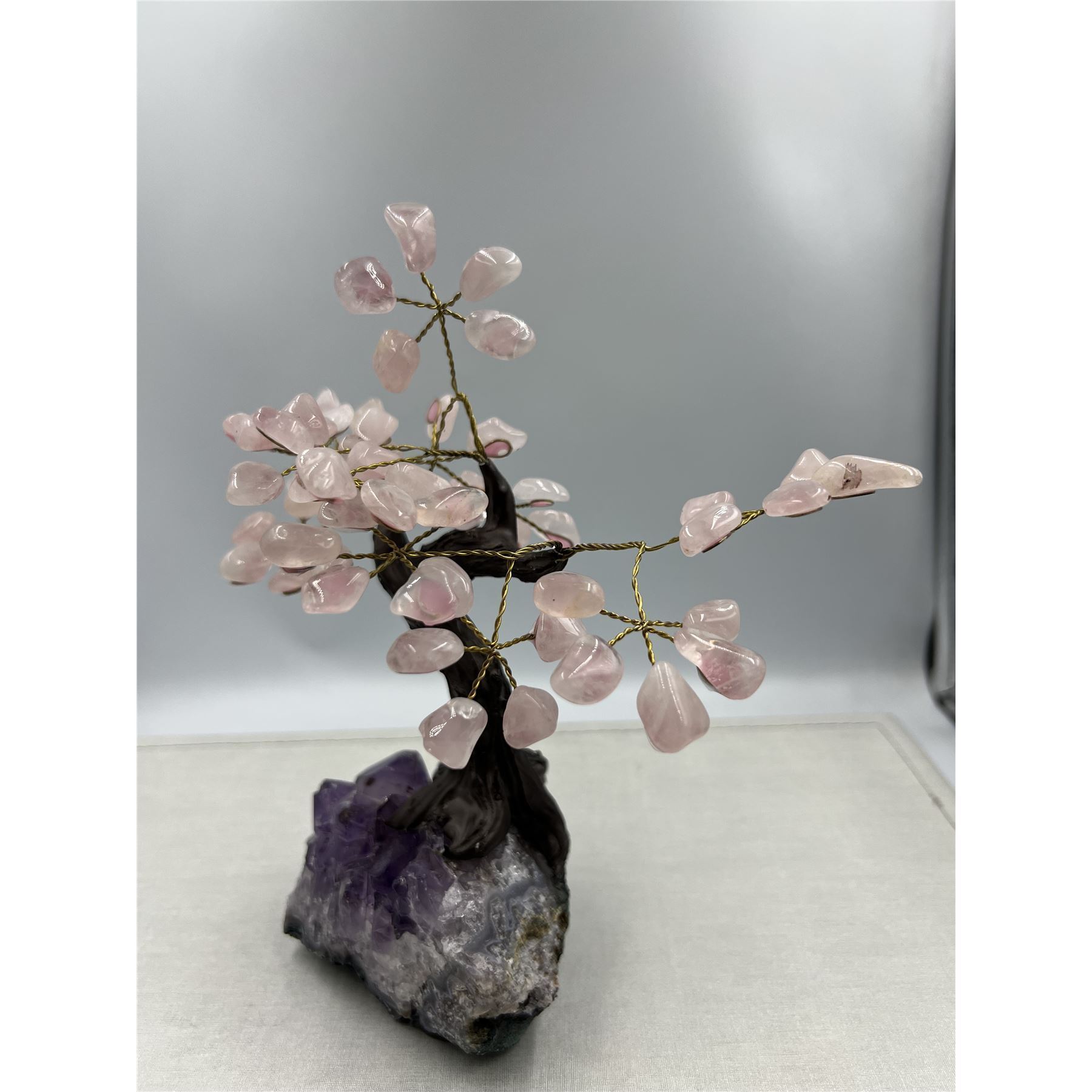Lot 47 8 X 8 INCH ROSE QUARTZ GEM CRYSTAL TREE WITH AMETHYST BASE HANDMADE