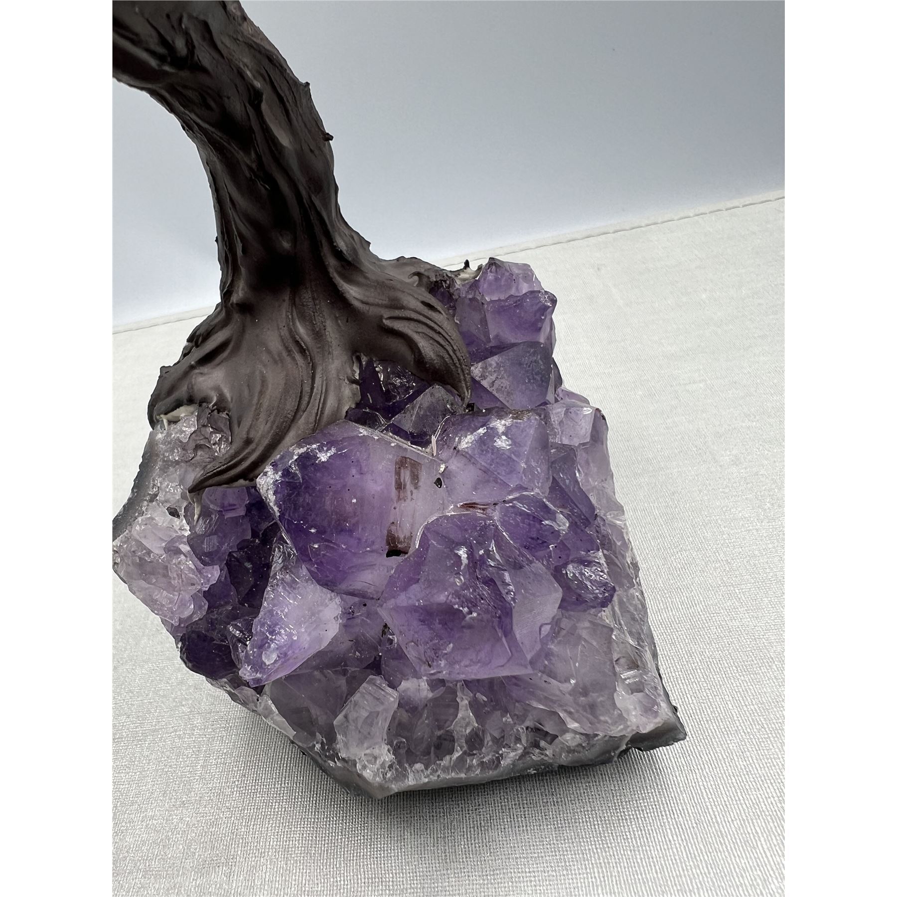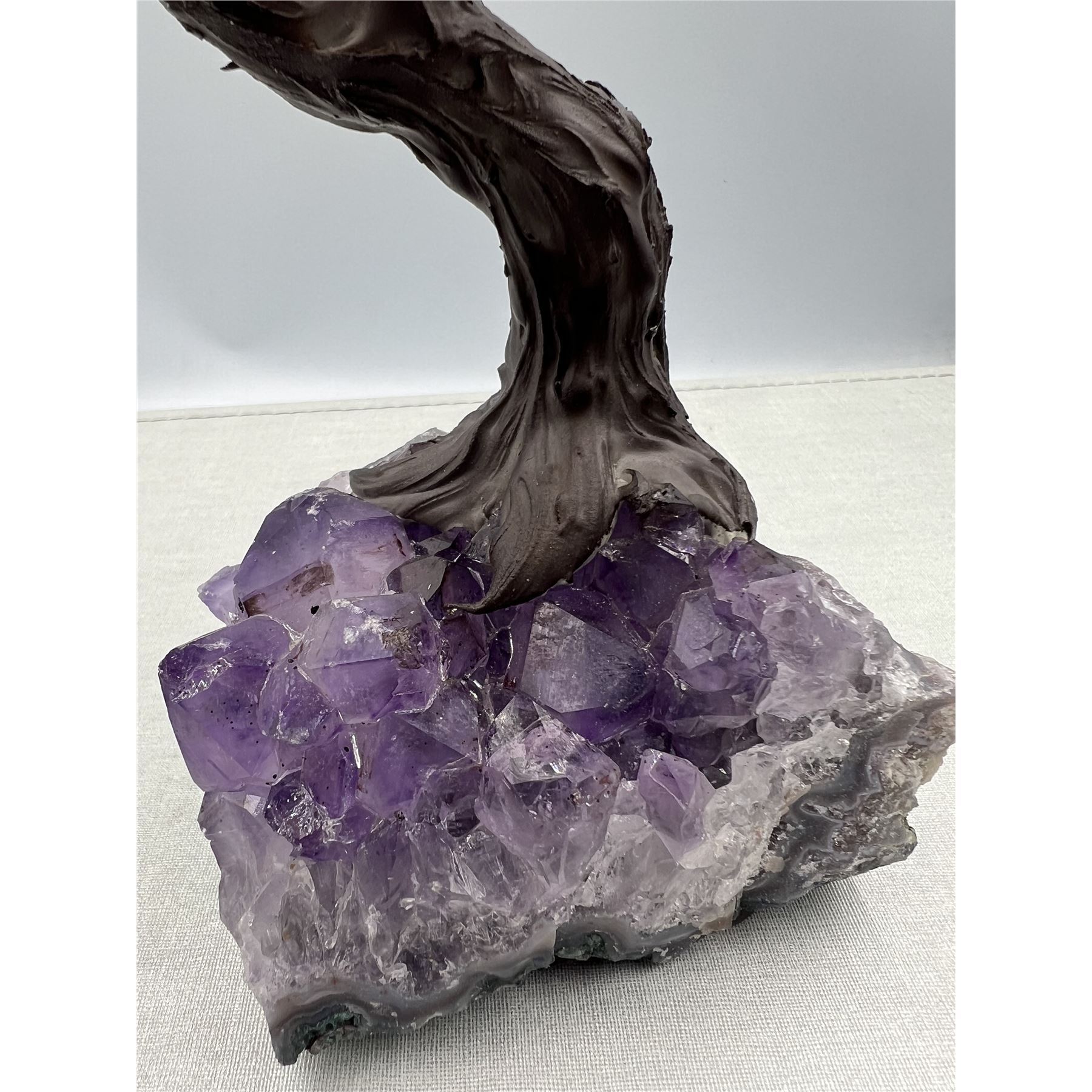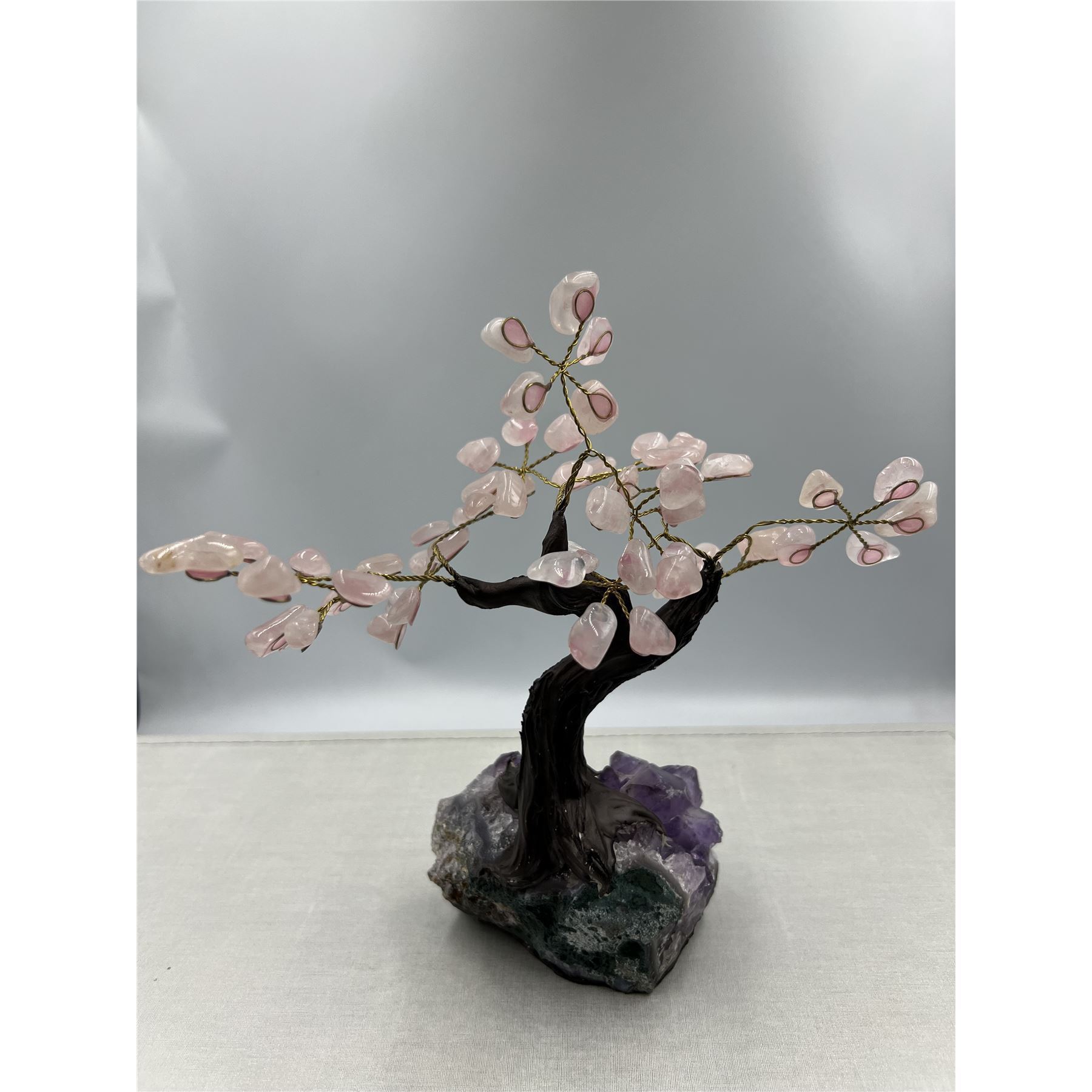 Handmade Rose Quartz Gemstone Tree w/ Amethyst Cluster base, 8 X 8" INCH tall.