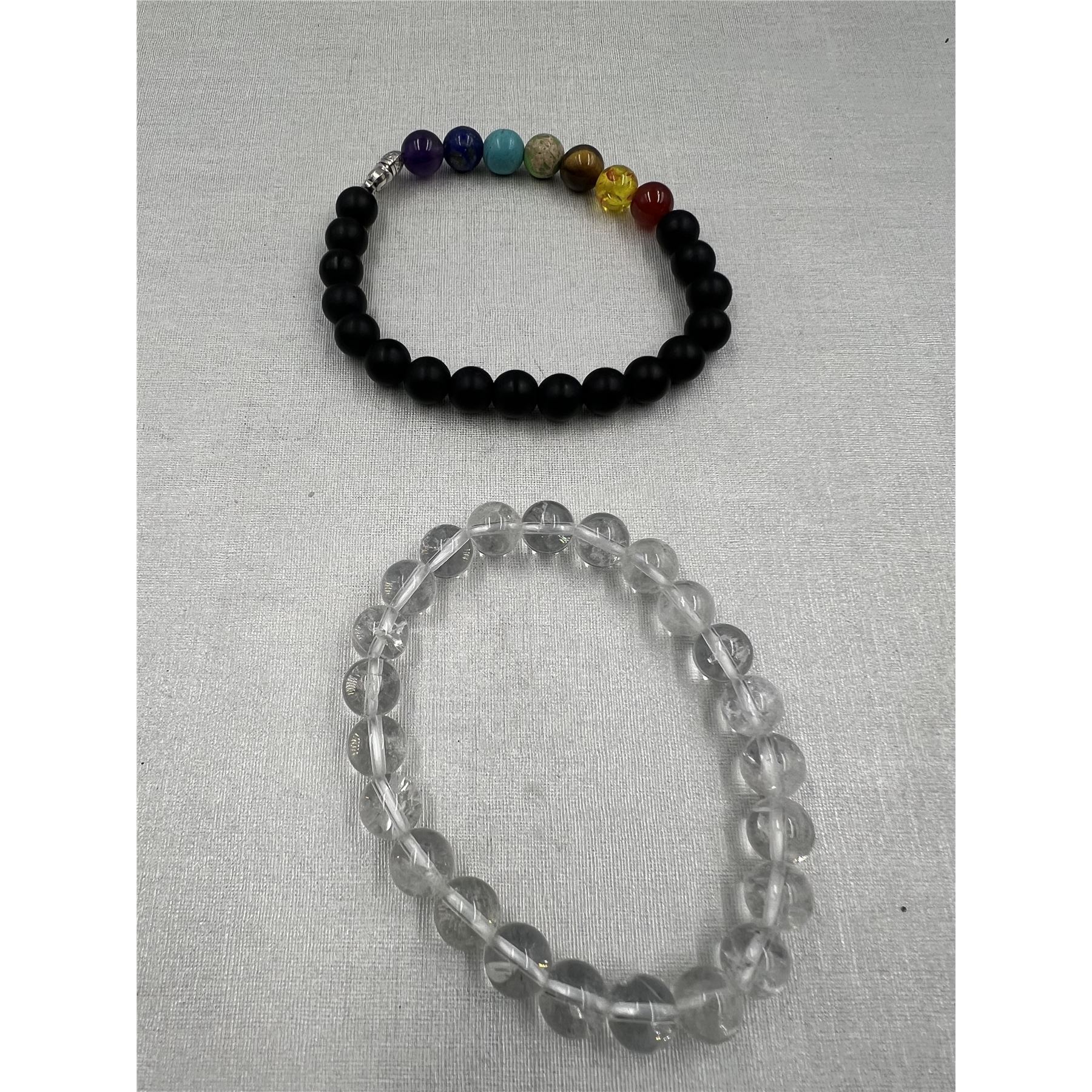 Lot 51 BRAND NEW CLEAR QUARTZ AND CHAKRA BRACELET 8MM