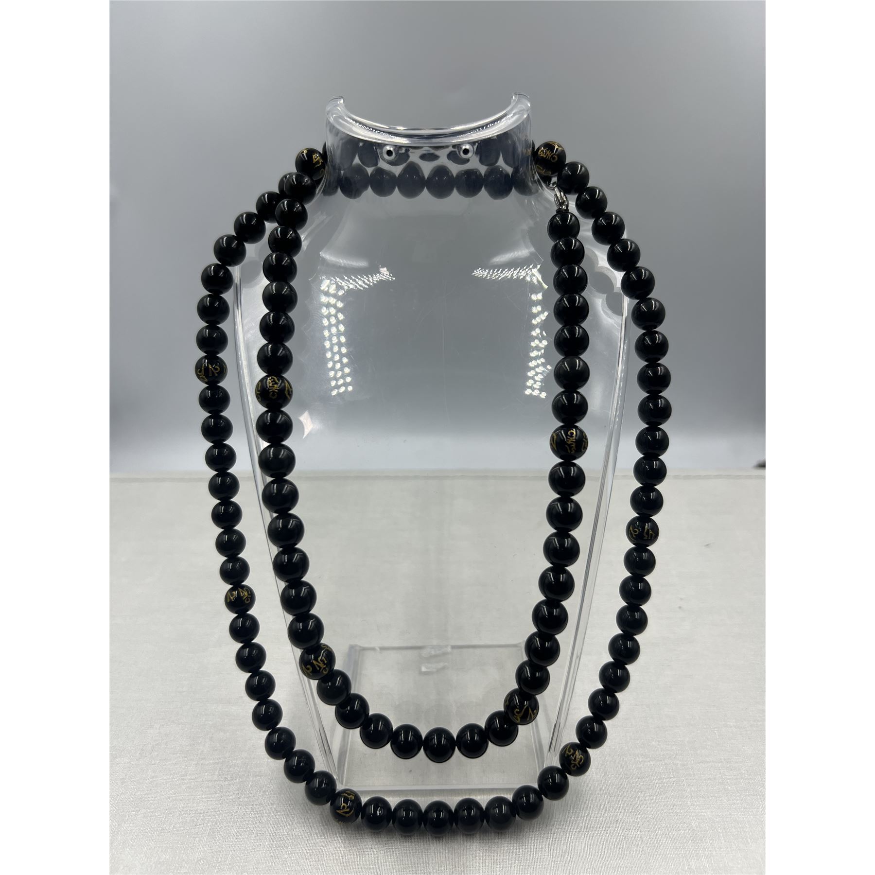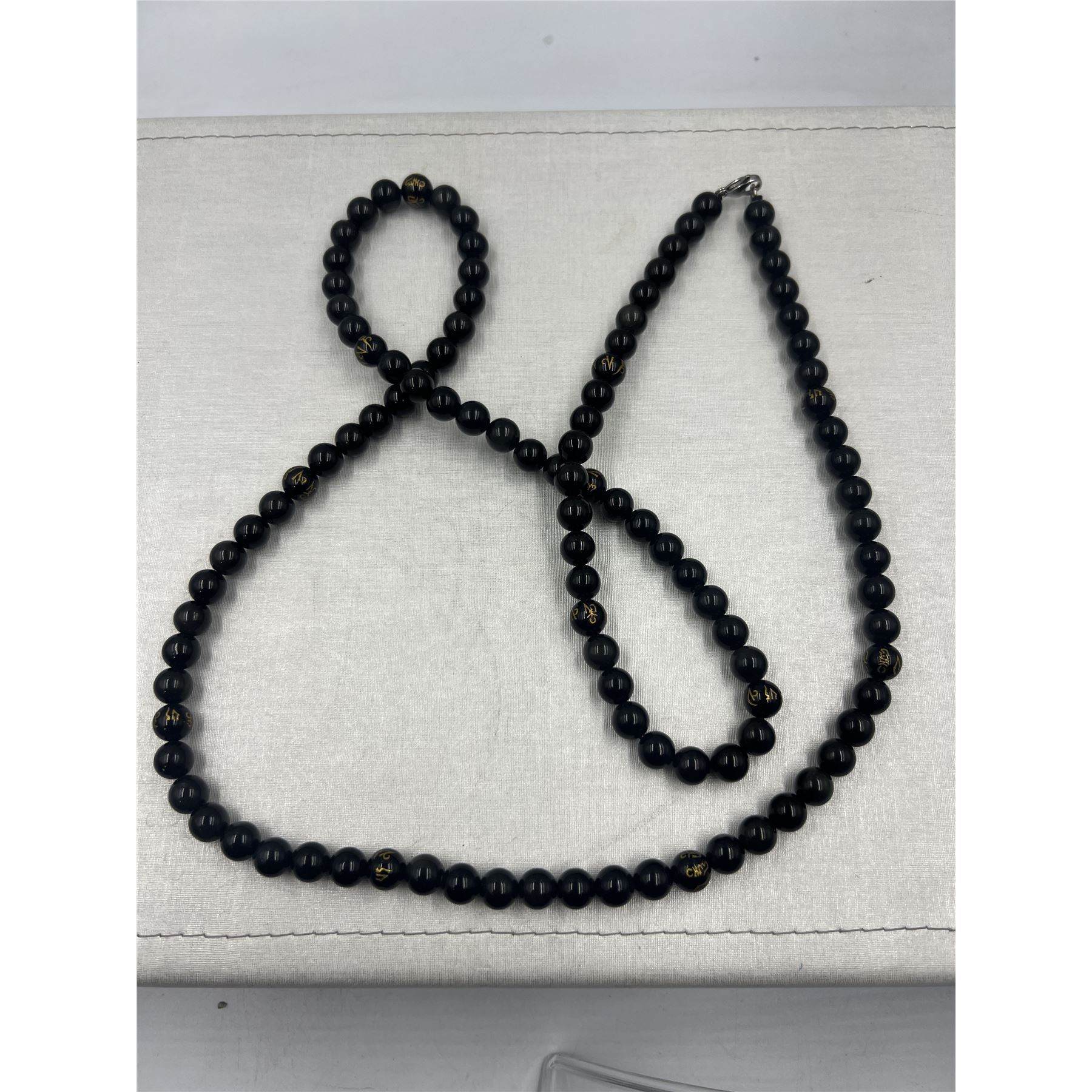 BRAND NEW 10 MM BLACK TOURMALINE NECKLACE 108 BEADS WITH MONEY MANTRA