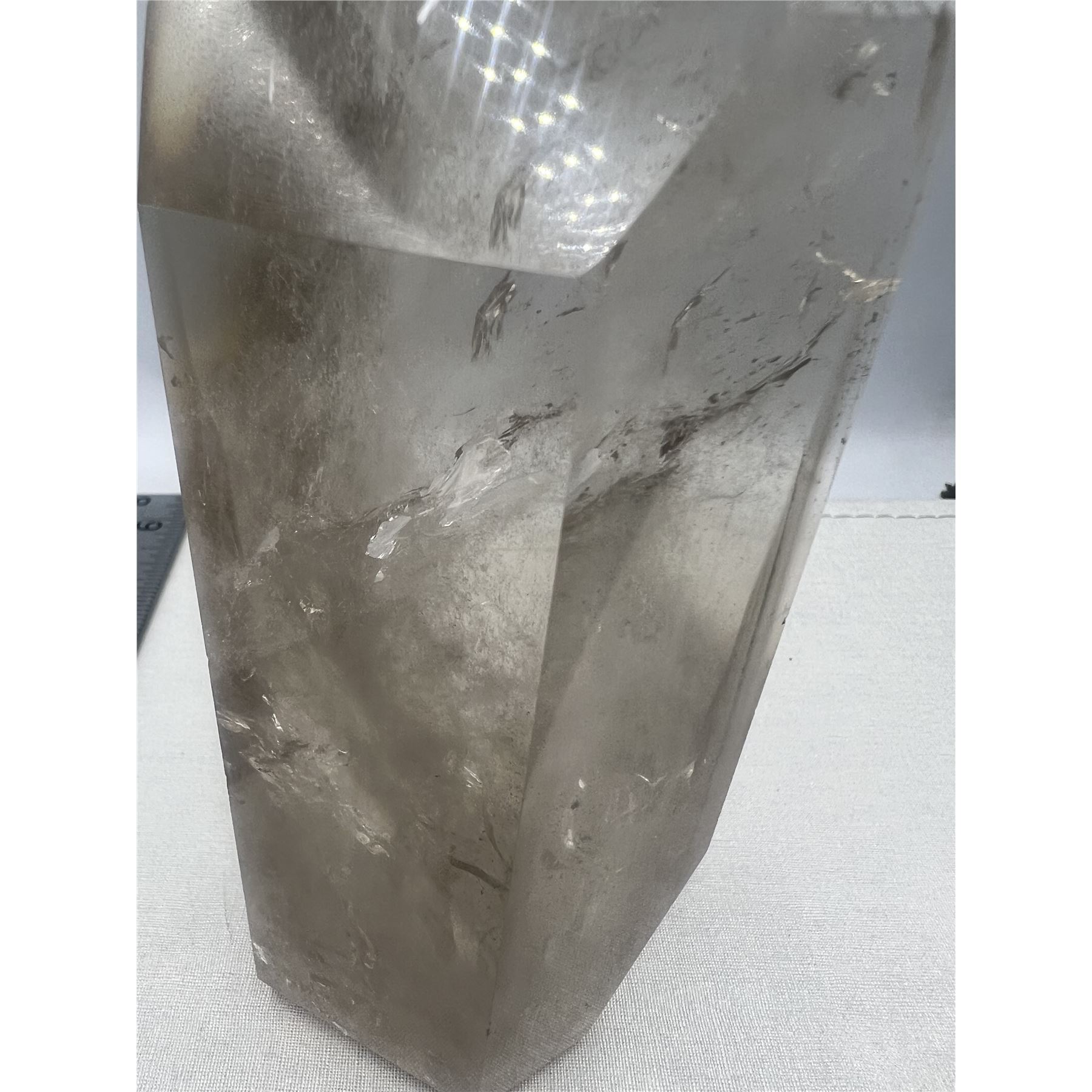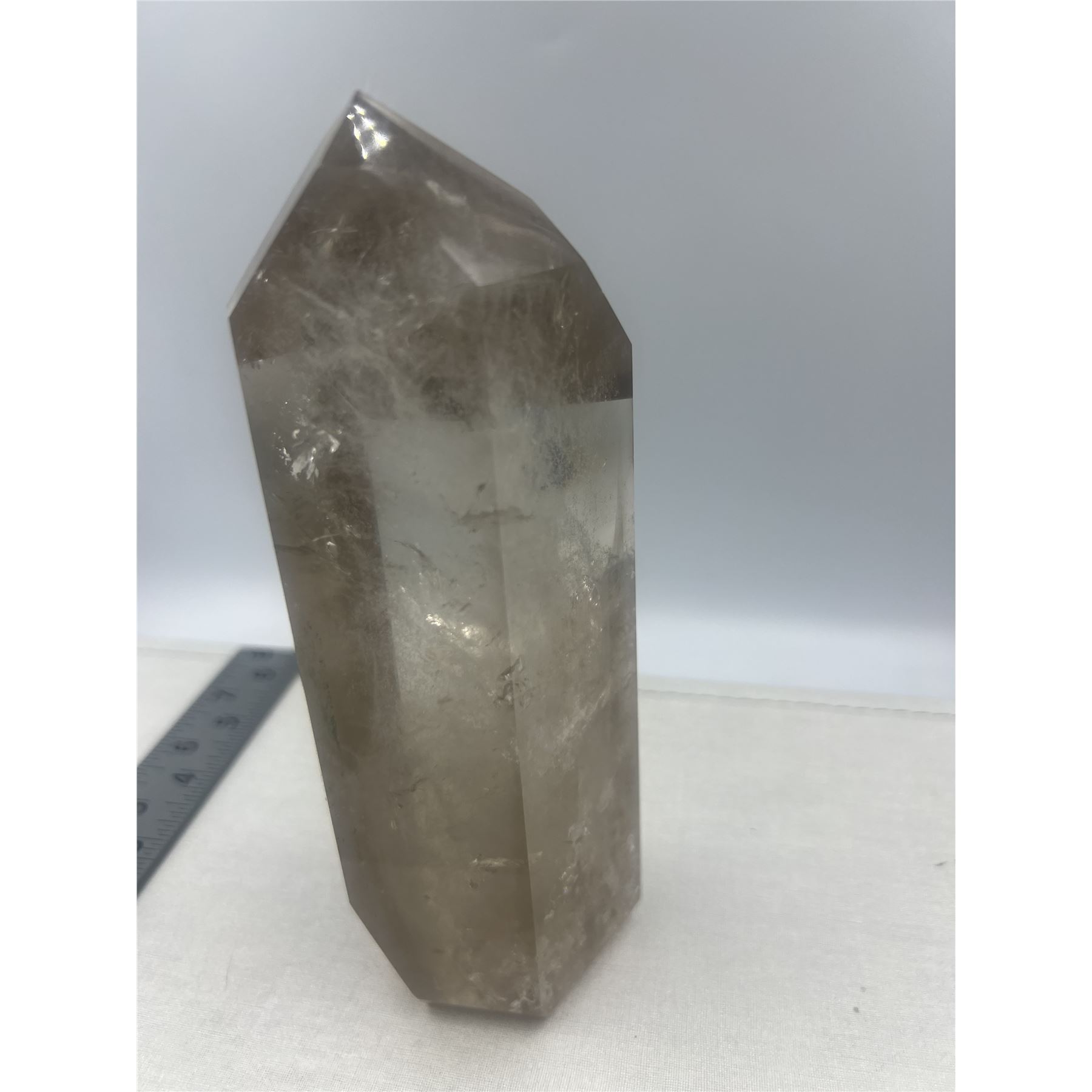 6.7 X 2.3 INCH SMOKY QUARTZ TOWER WITH GREEN GARDEN INCULSION