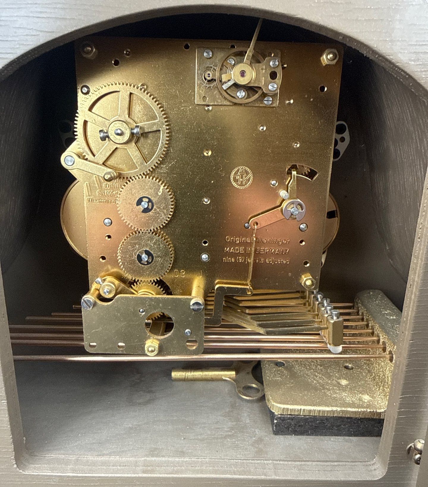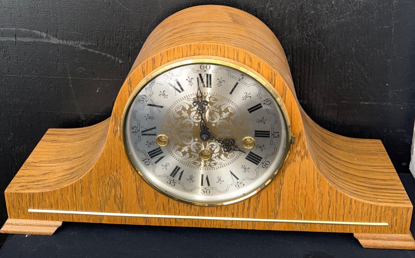 Lot 69 Vintage Hermle Laurel Mantel Clock - Mechanical Westminister Chime Movement