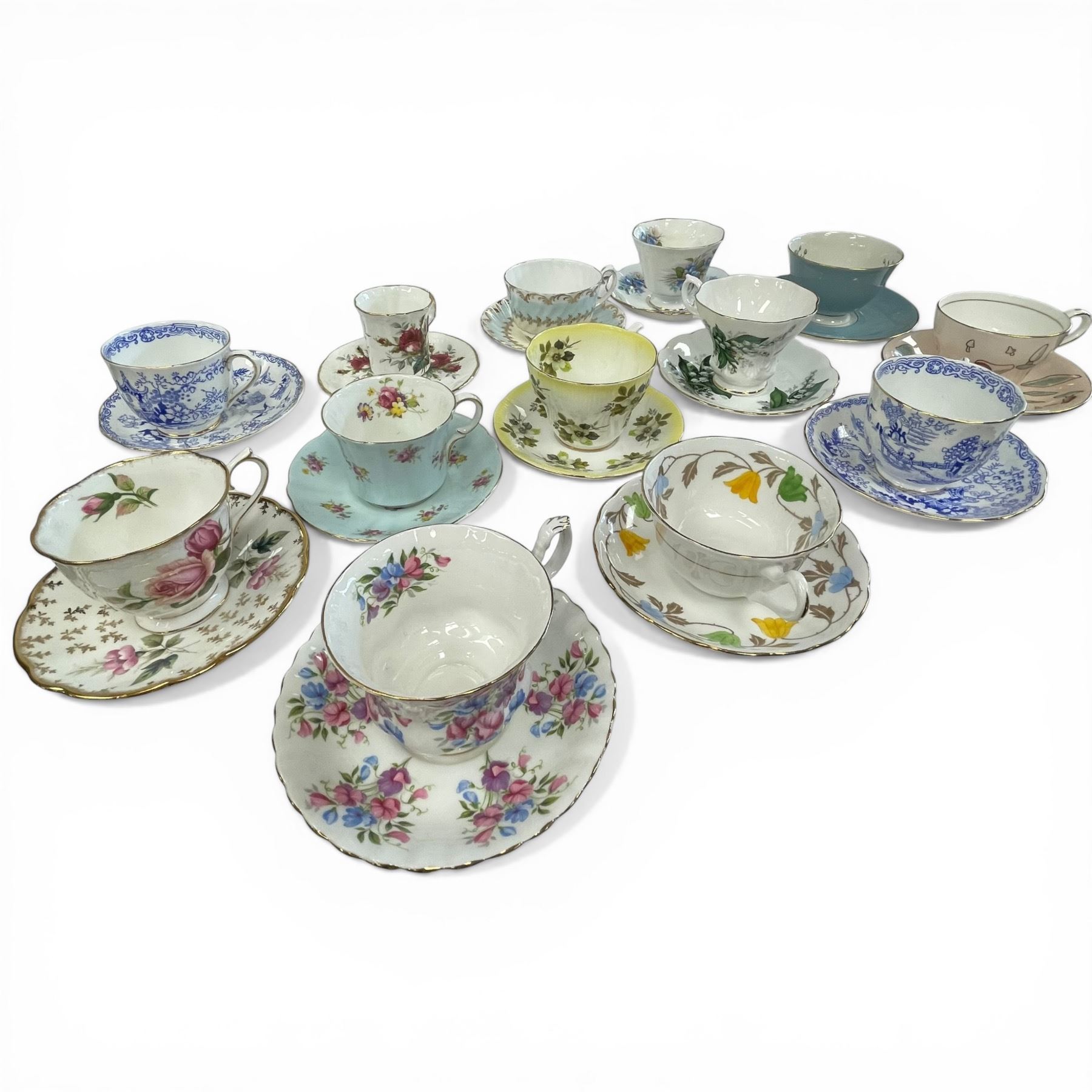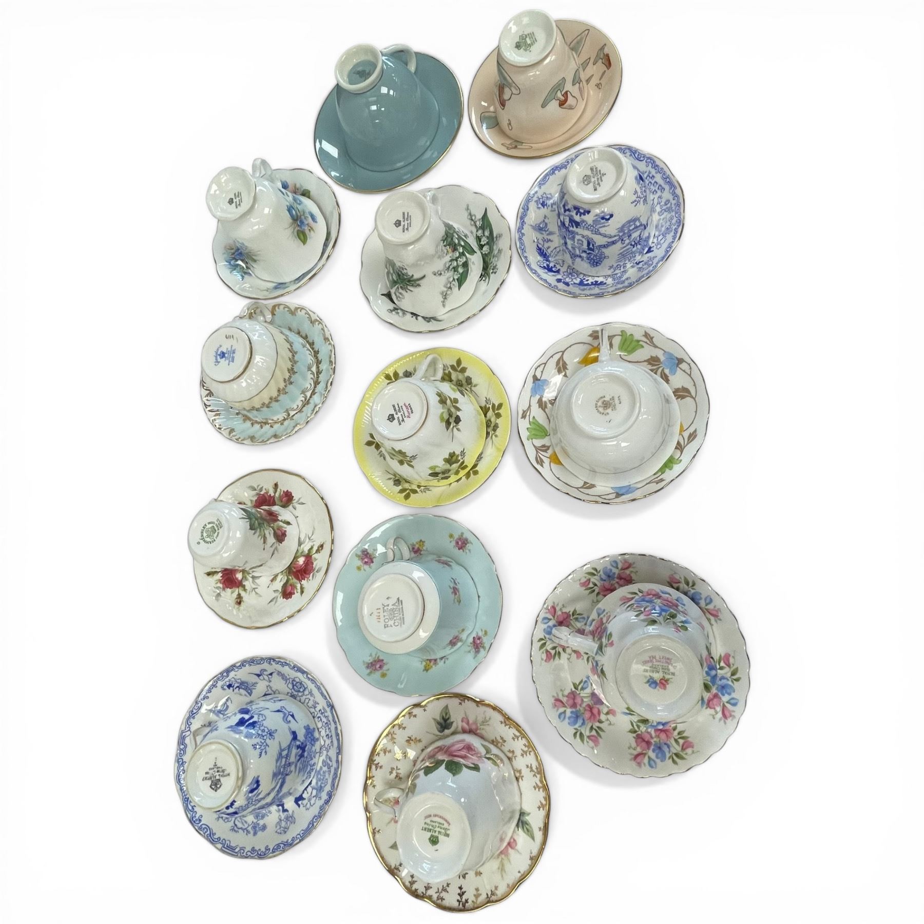 13 Fine China Teacups with Saucers * Featuring Royal Albert and Aynsley plus other well known names