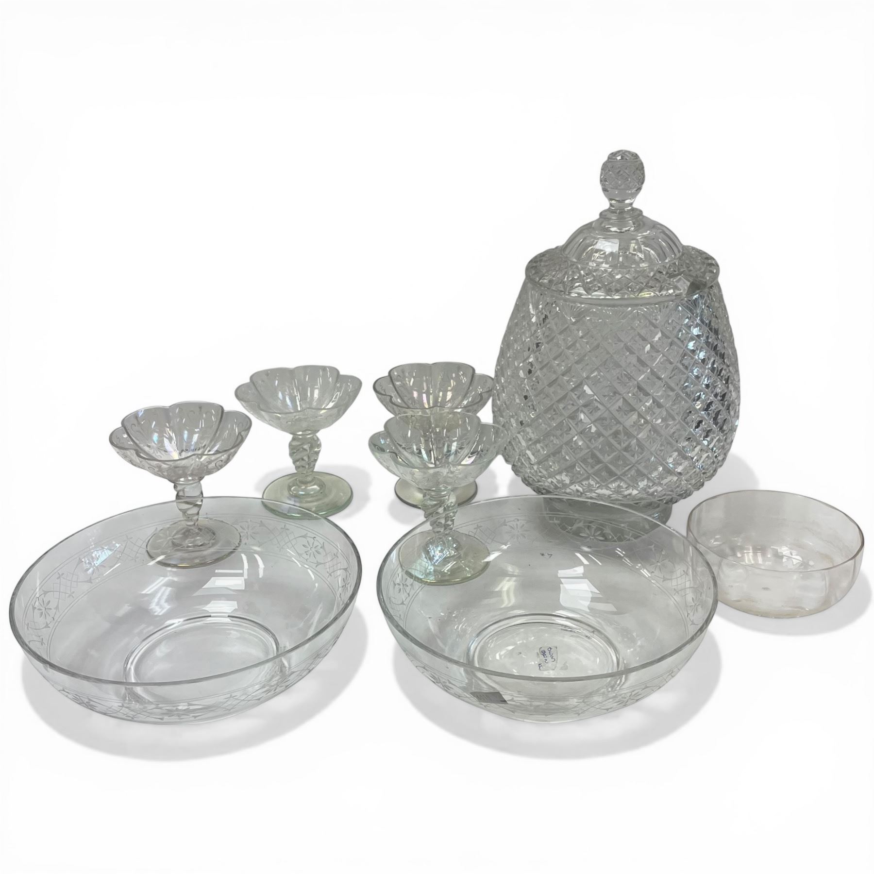 Lot 99 Large Crystal Candy Dish , 4 Crystal Glasses & 2 Bowls (Candy Dish is 12" Tall X 8.5" Diameter)