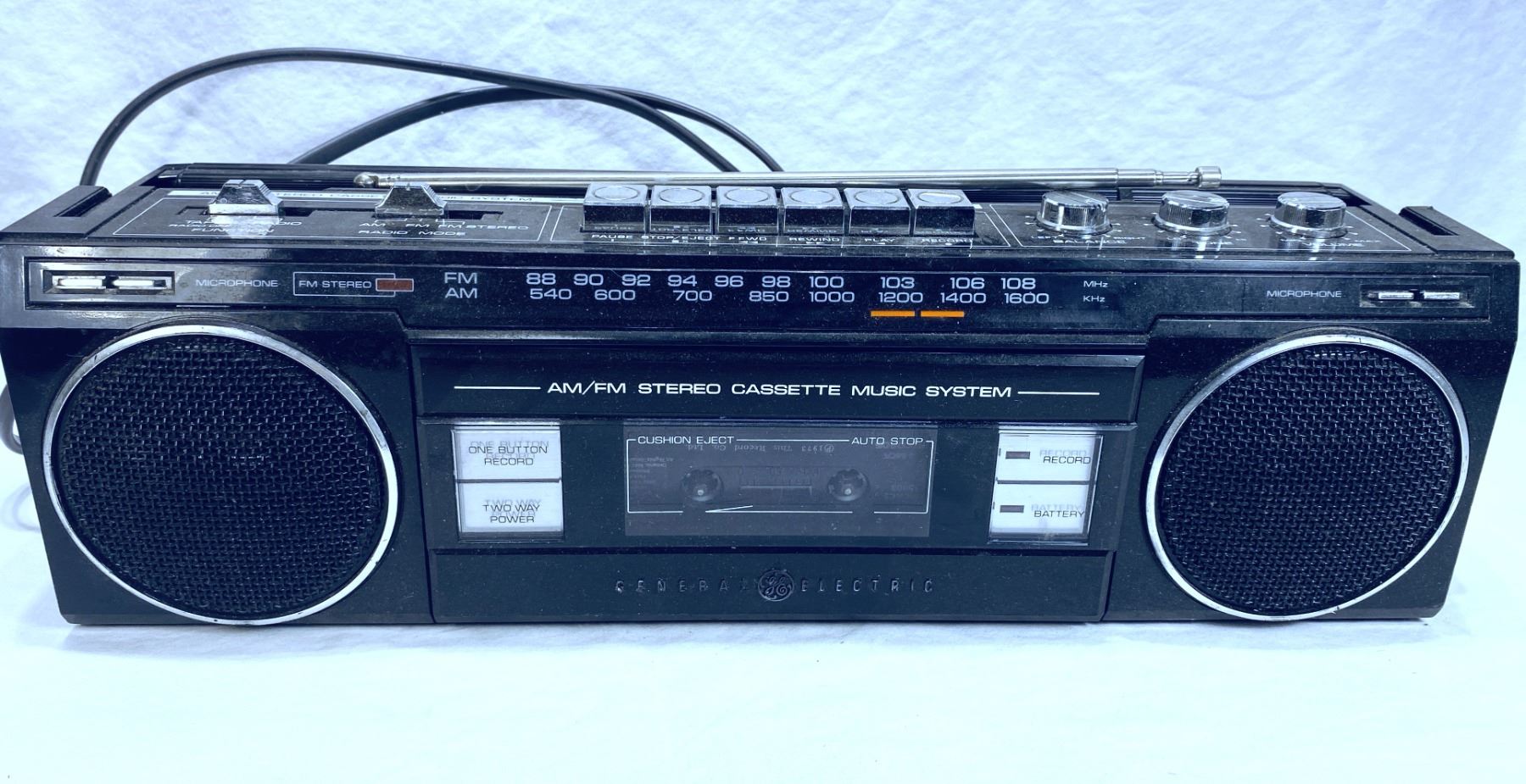 Lot 1087 General Electric Radio Model 3-5283B-BLKand Cassette Player with Tape