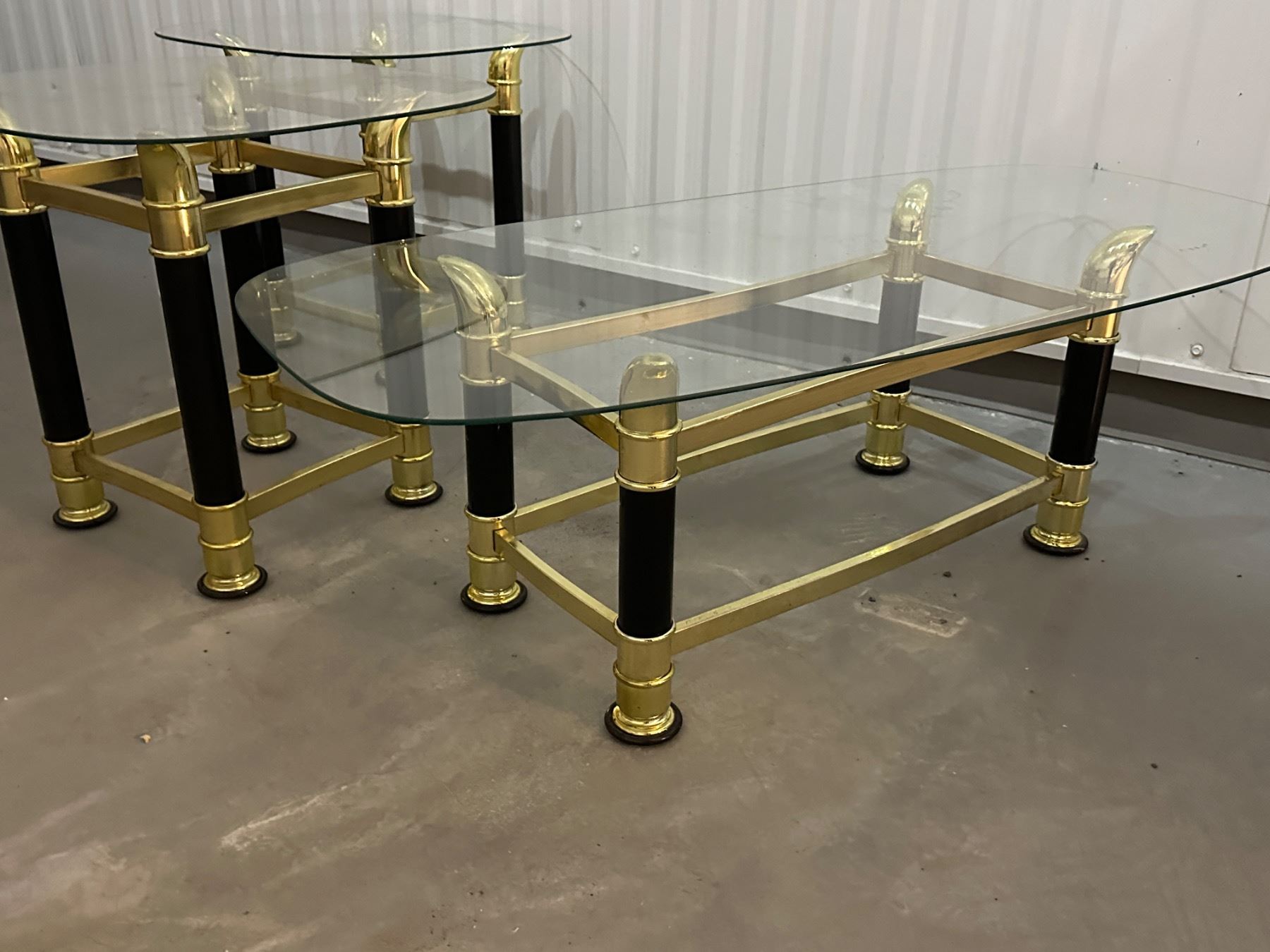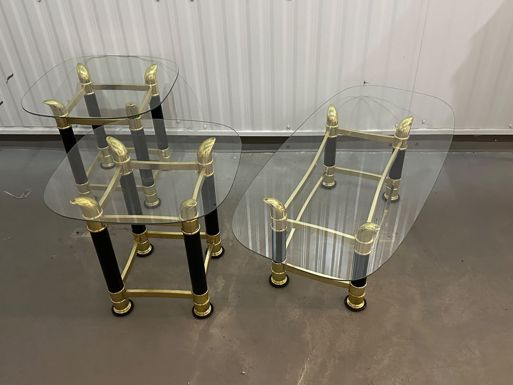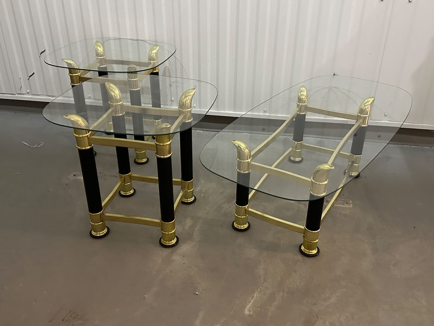 Lot 2136 Tommaso Barbi Style Faux Tusk Glass Top Side Tables and coffee table .