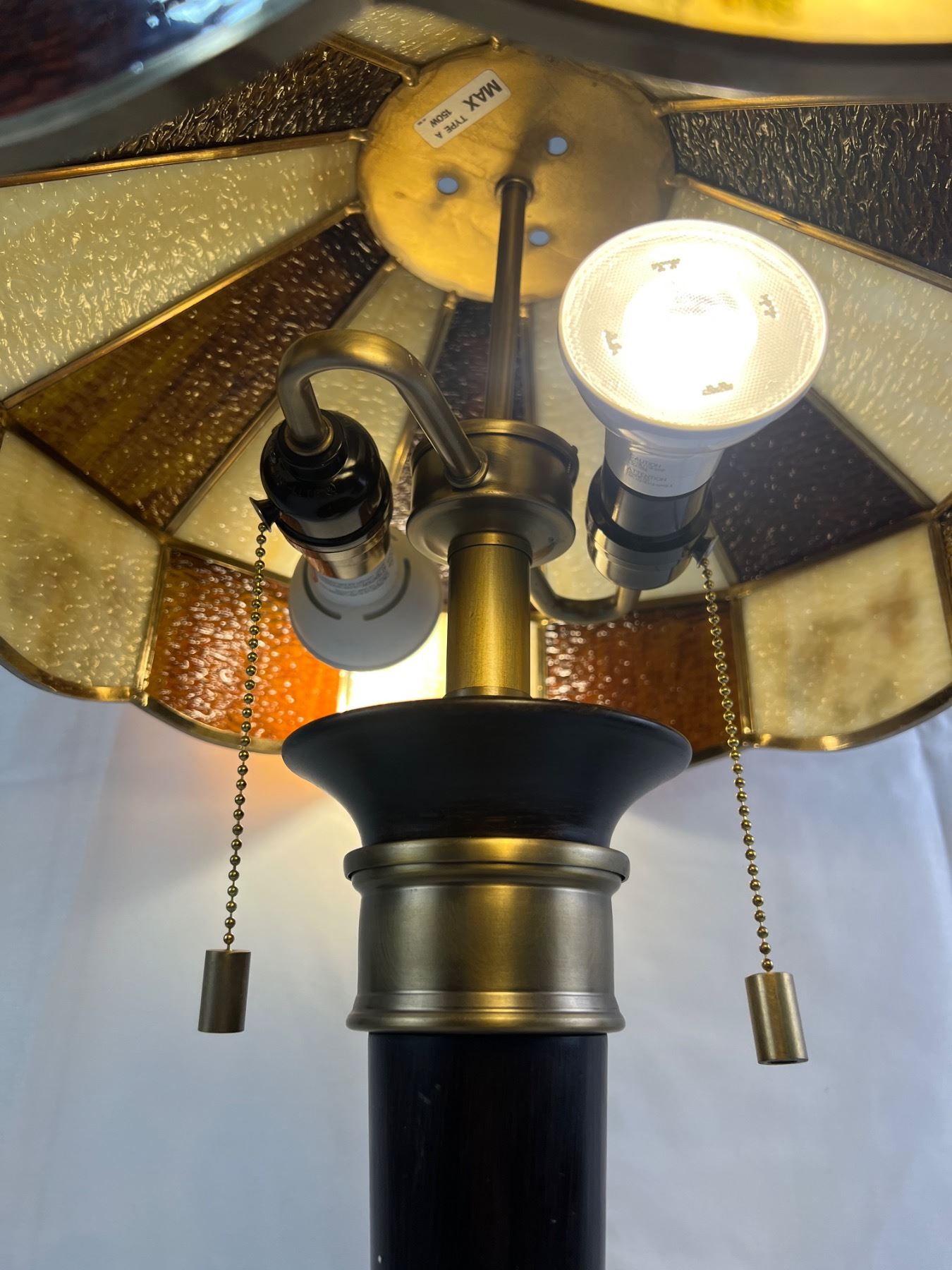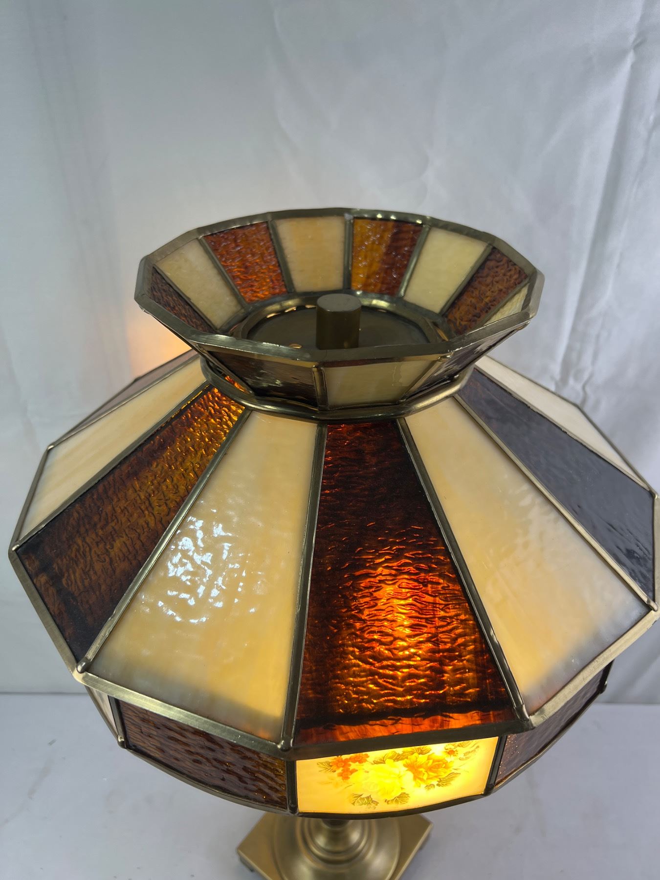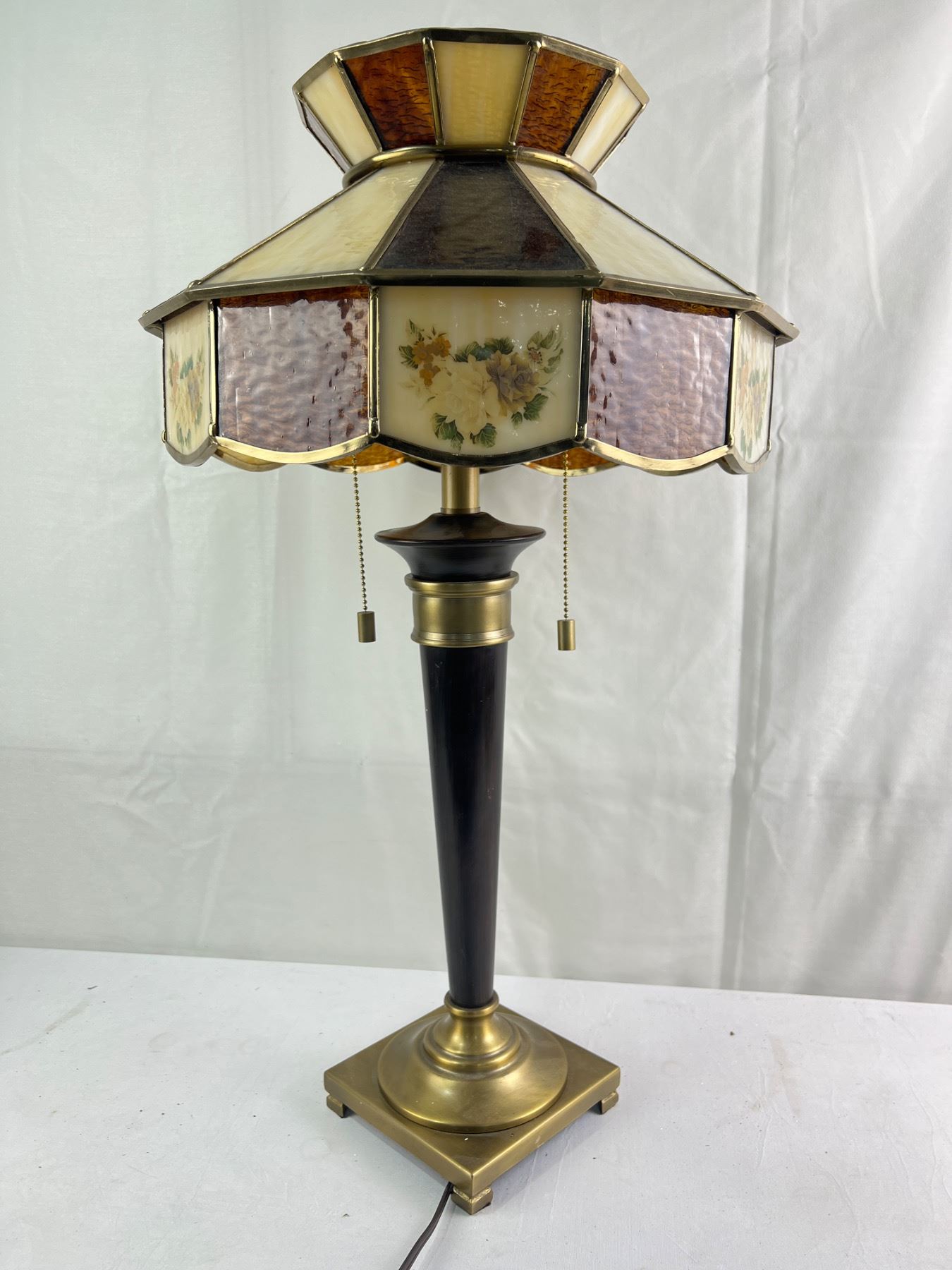 Vintage Lamp With Tiffany Style Glass Shade Measures 16" x 28"