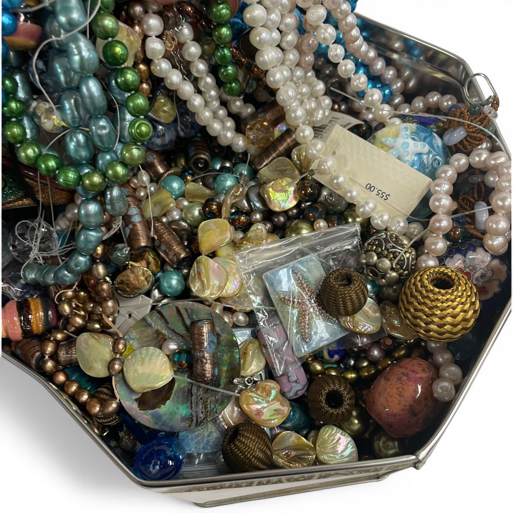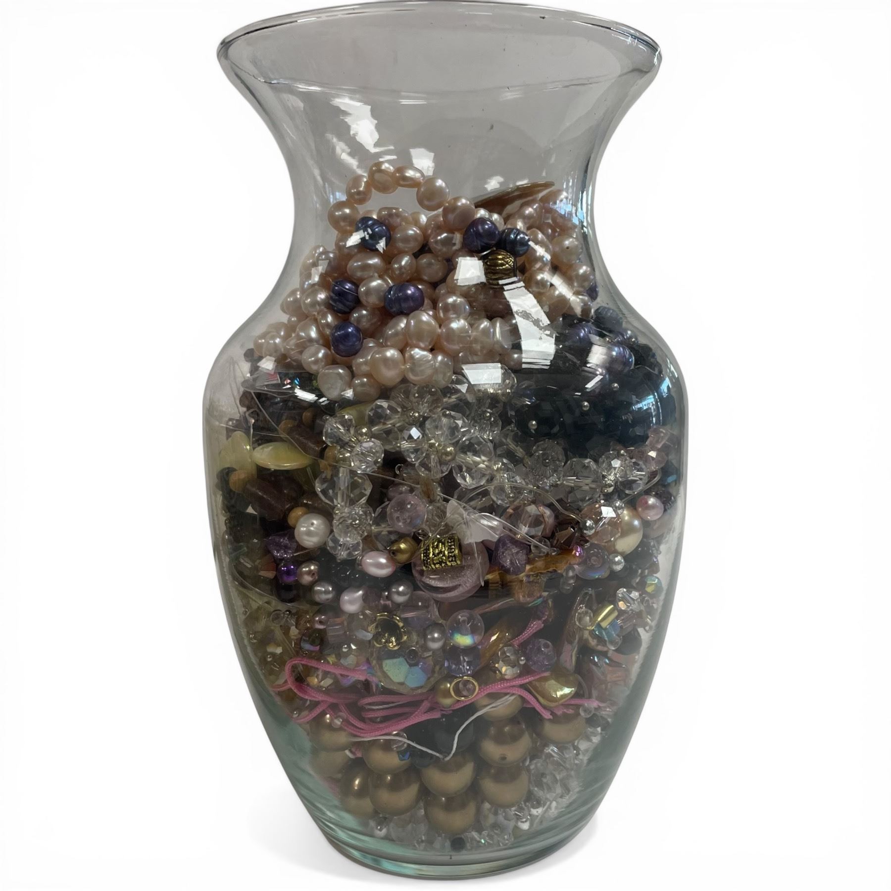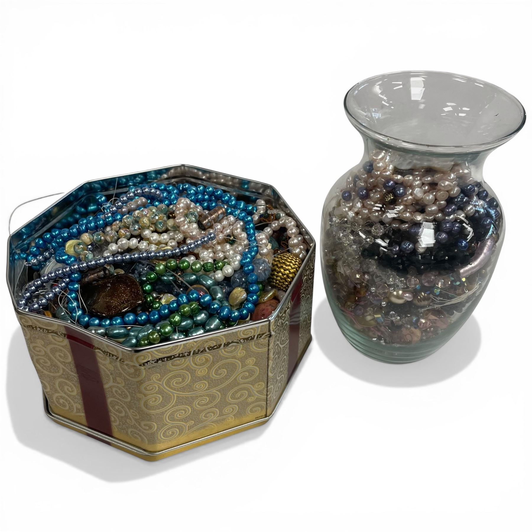 Lot 151 Tin and Vase Full of Beads and Beaded Jewelry