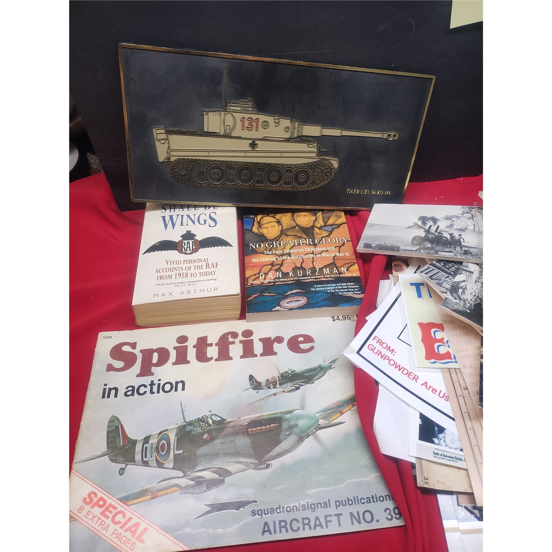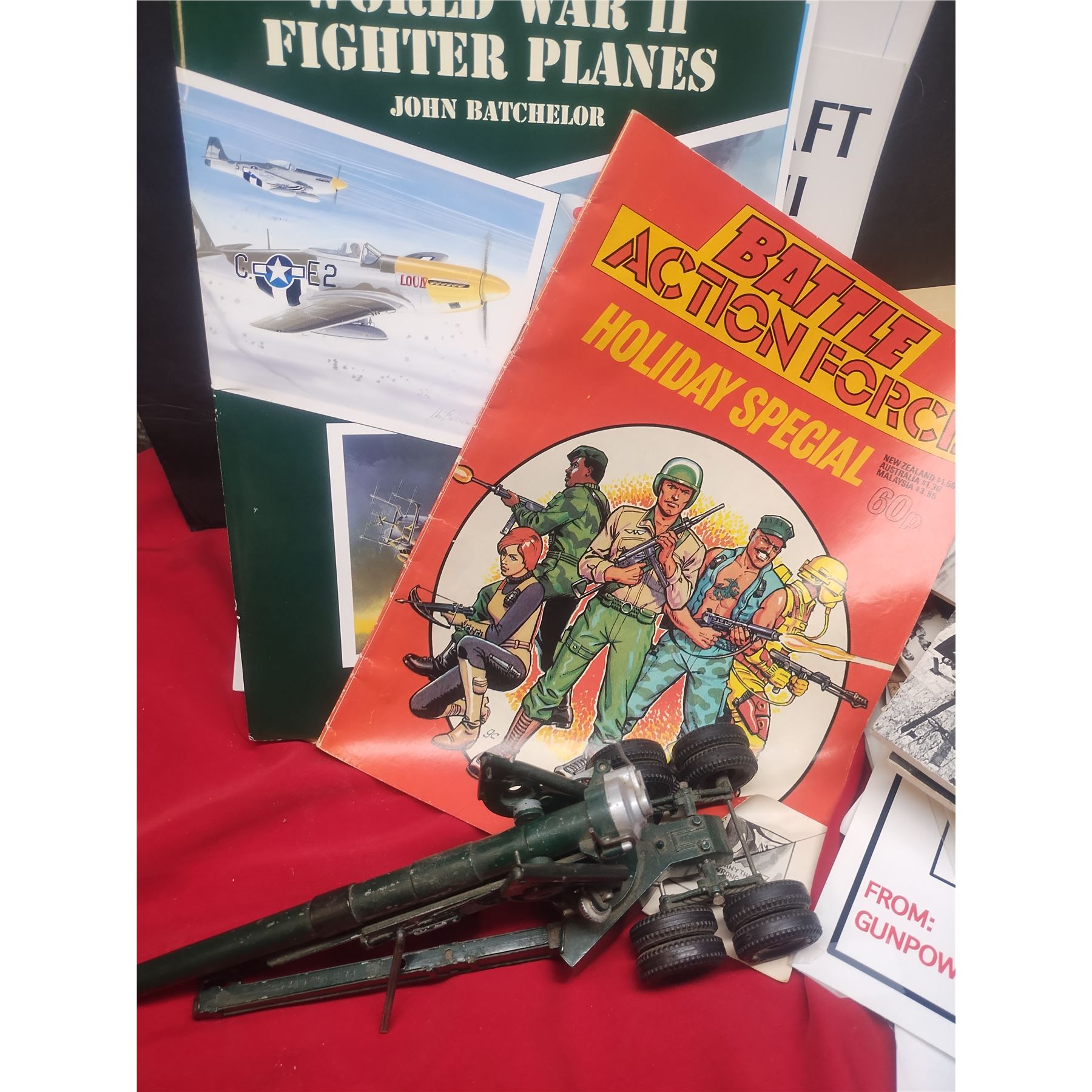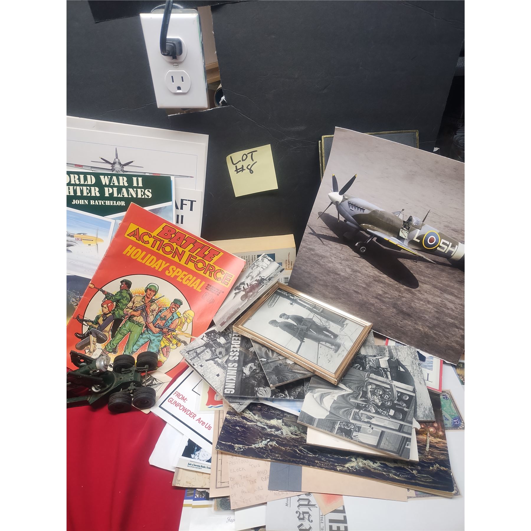 Various mix of all things military, from posters to papers and even a toy that needs some fixing
