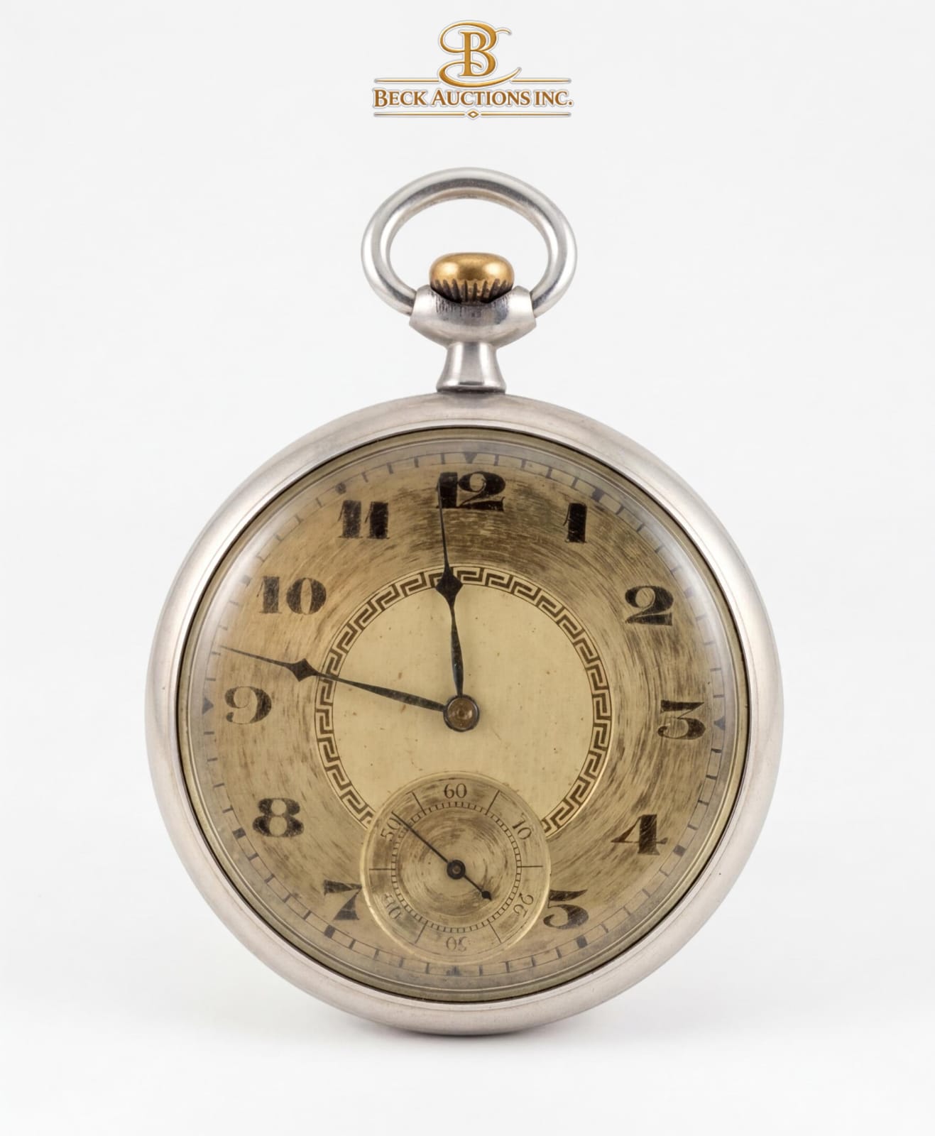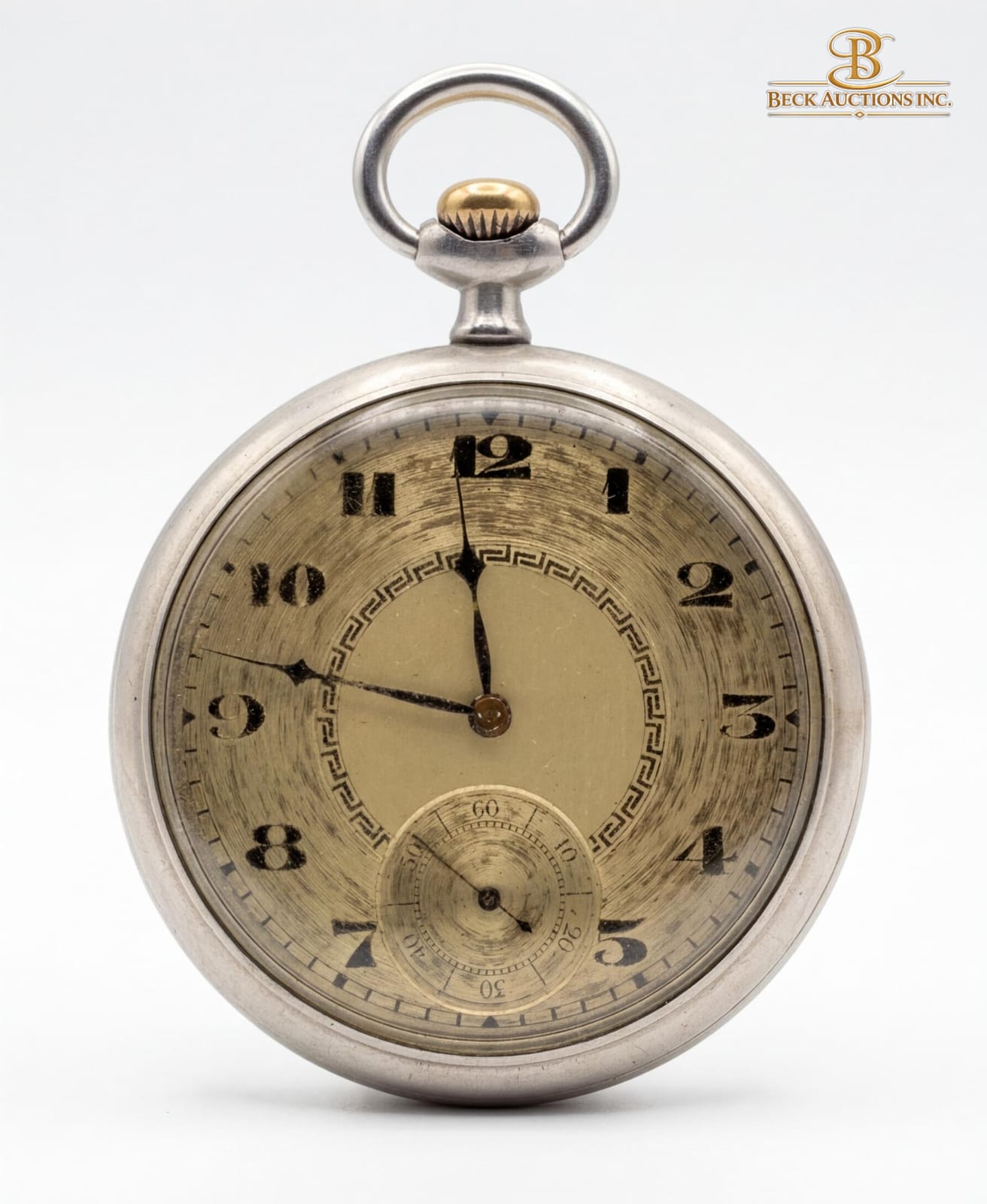 Lot 17 Art Deco Open Face Pocket Watch , Textured "Tropical" Dial With Arabic Numerals Subsidiary Seconds.