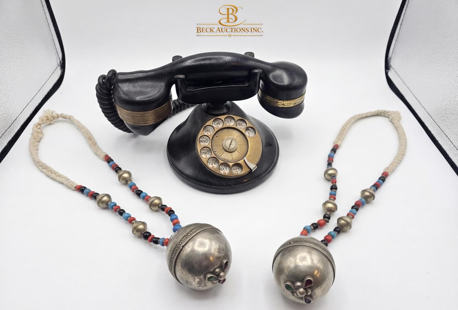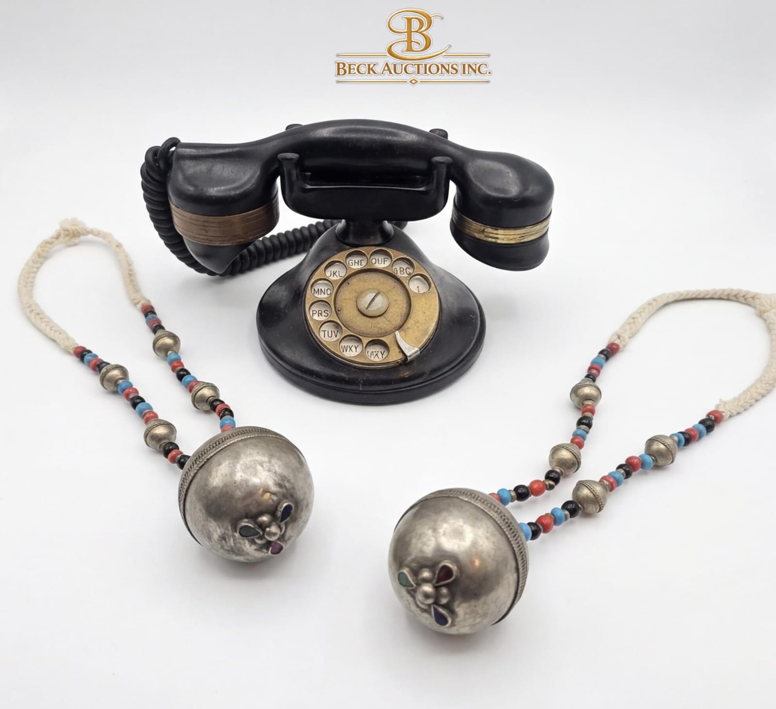 Lot 18 Vintage Automatic Electric Monophone , Statement Necklace Large Metallic Pendant Tibetan Beads