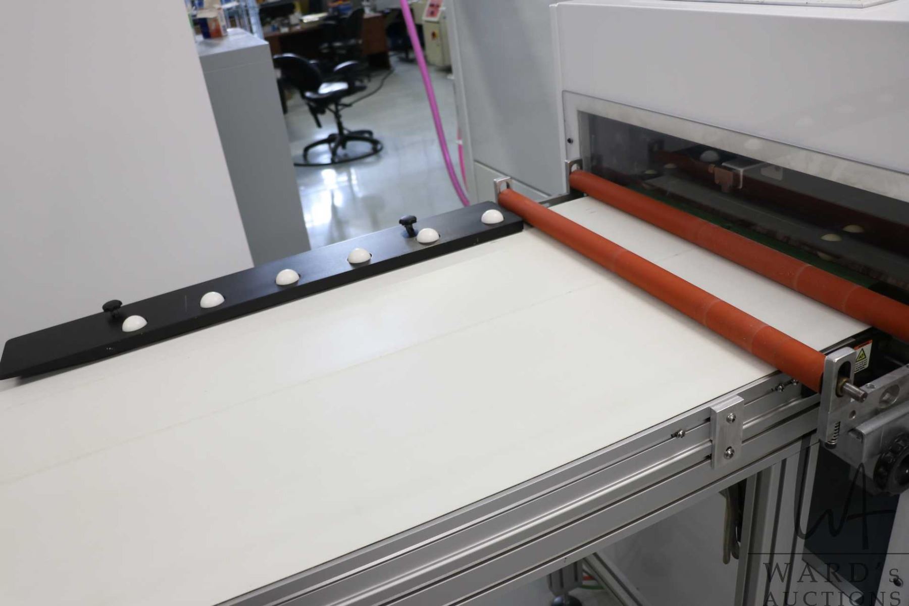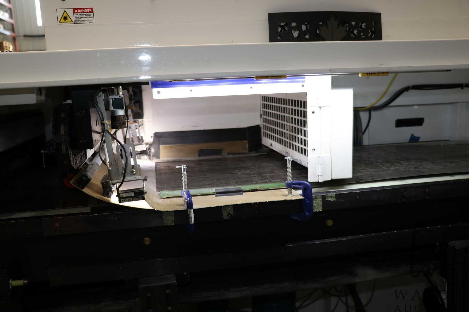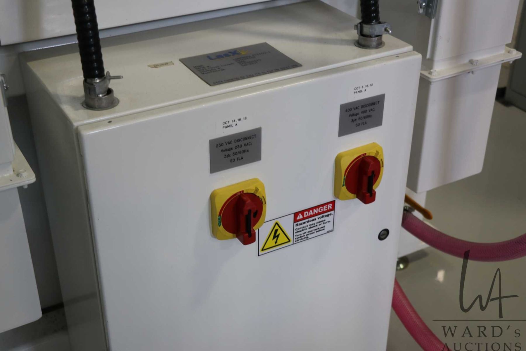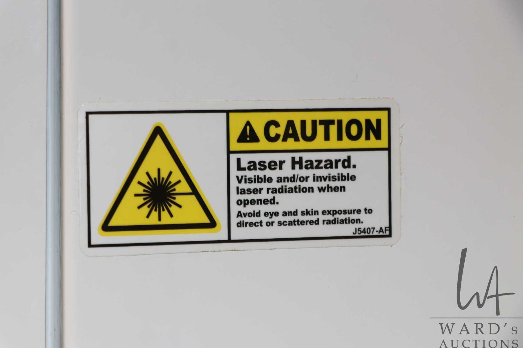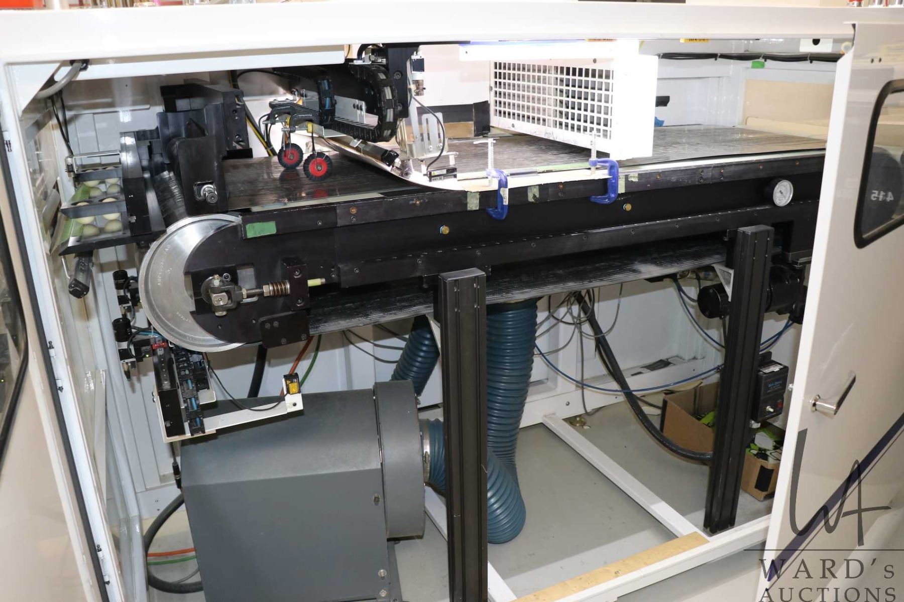 LASX 600 watt CO2 laser Lasersharp STS400-2 , SN 201709306. Fitted with two Rofin SCX 600 watt lasers, two HurryScan with VarioScan 40 dynamic focus devices, belt driven feed system with dual camera registration, Fred SR Fume Extractor and Koolant Koolers cooler. This laser can cut high end custom designed packaging and other card stock items with extreme accuracy and speed. The owner of Inkubate Packaging is open to being hired by the successful buyer to train on the operation and maintenance of this laser prior to removal. LasX has confirmed that they can be contracted to offer advice regarding preparation for moving and technical help after setup for things like alignment and calibration etc. Physical removal of the machine must be done by a licensed, experienced and insured mover like Wingenback (wingenback.com) See video on website shot on March 30, 2026. -- This setup can be seen in operation on preview day and the owner is available for hire to train after the auction, prior to removal.