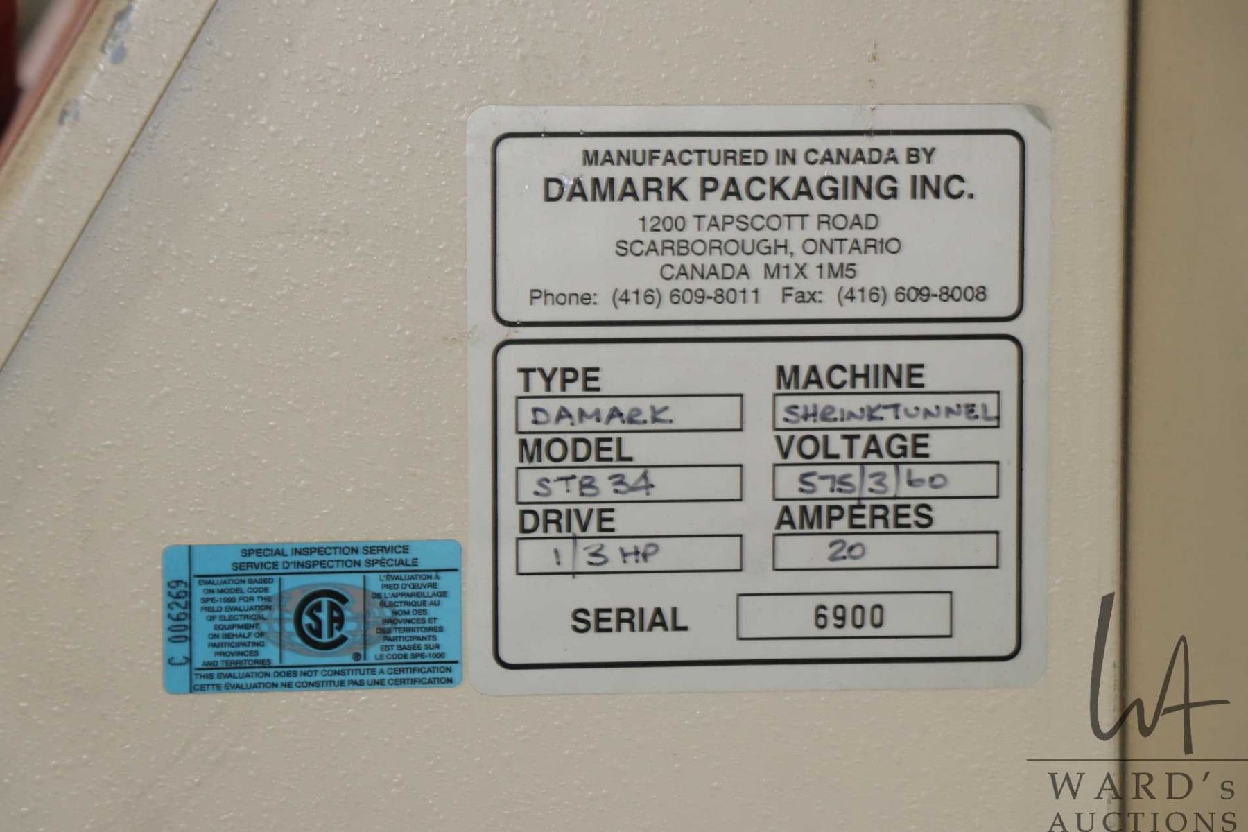 Damark model STB34 shrink tunnel. Serial number 6900. Three phase requirement. See video on website shot on March 30th, 2026. - This setup can be seen in operation on preview day