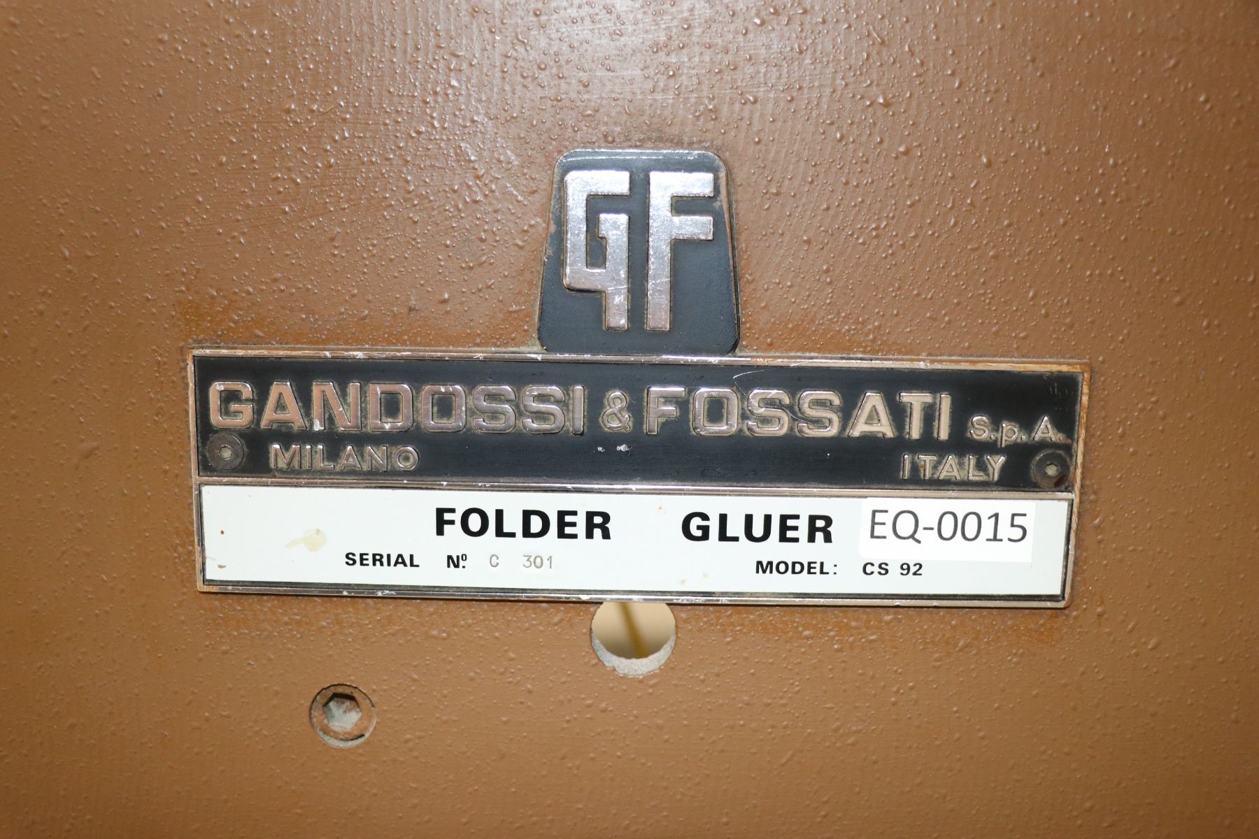 Lot 108 Gandossi & Fossati Model CS92 Folder Gluer serial number C301, approximately 411" long and includes