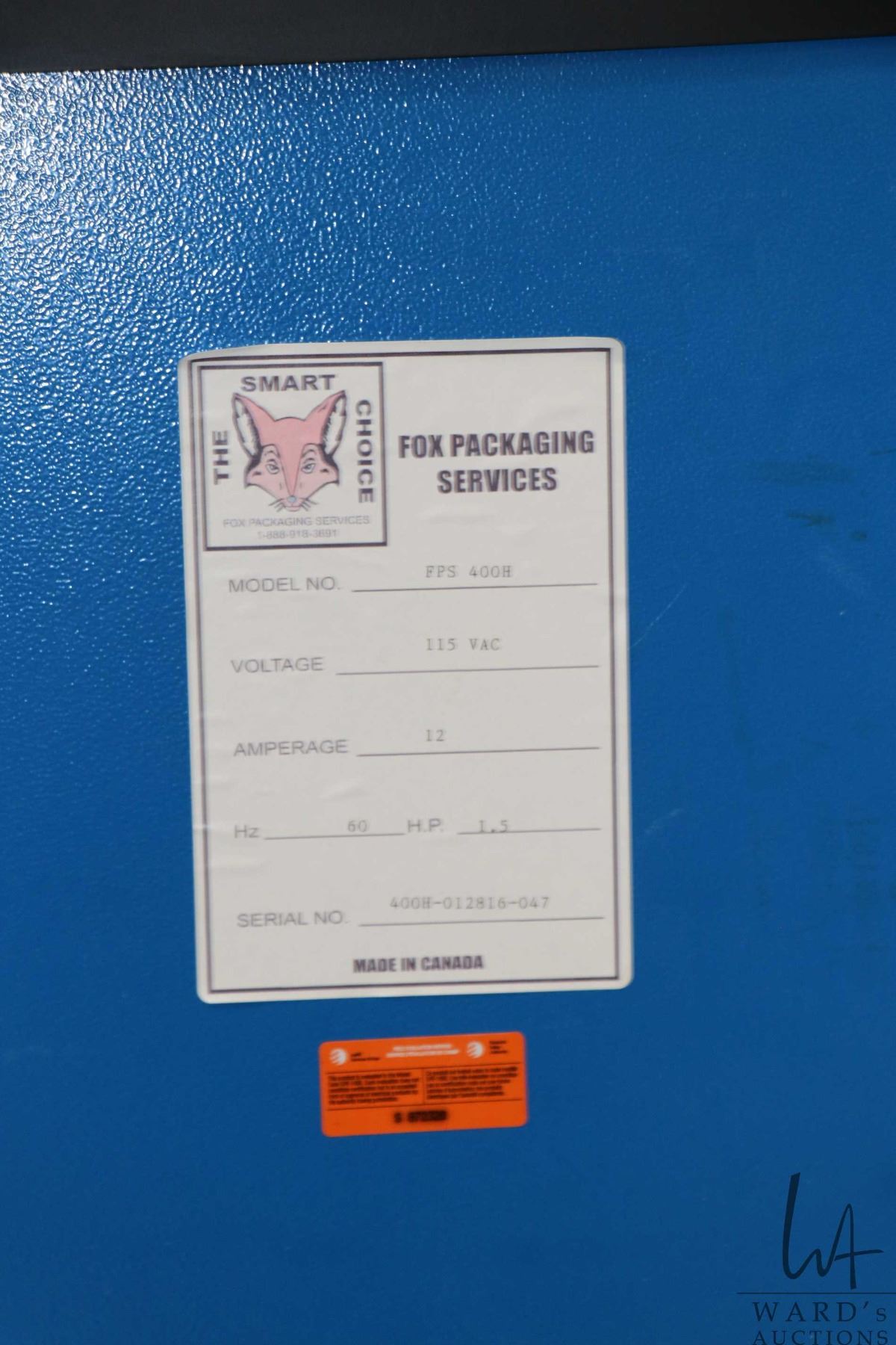 Lot 110 Fox Packaging Services pallet stretch wrap machine, model FPS-400H. Serial Number 400H-012816-047. 1