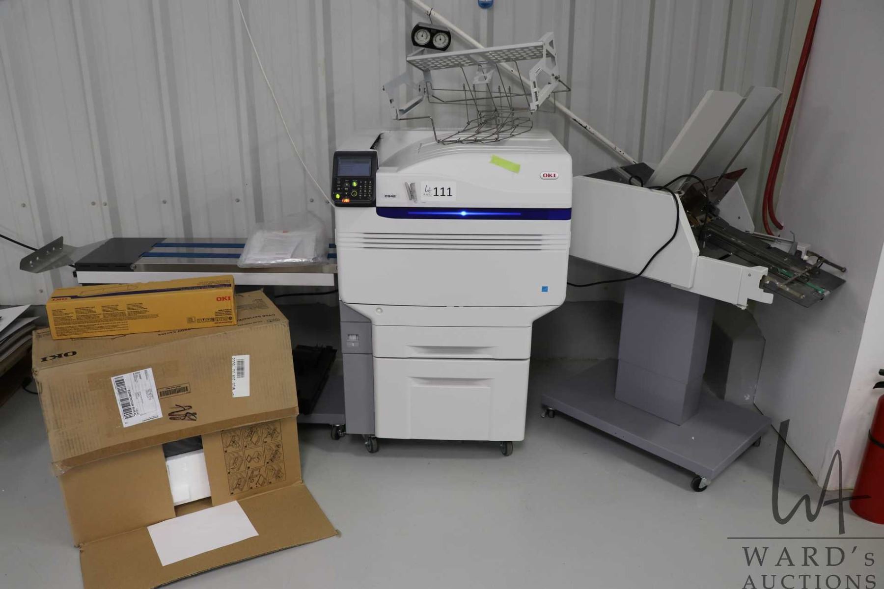 Lot 111 OKI C942 DP Digital LED five colour printer, CMYK plus white ink, Extended delivery, 18 point thickn