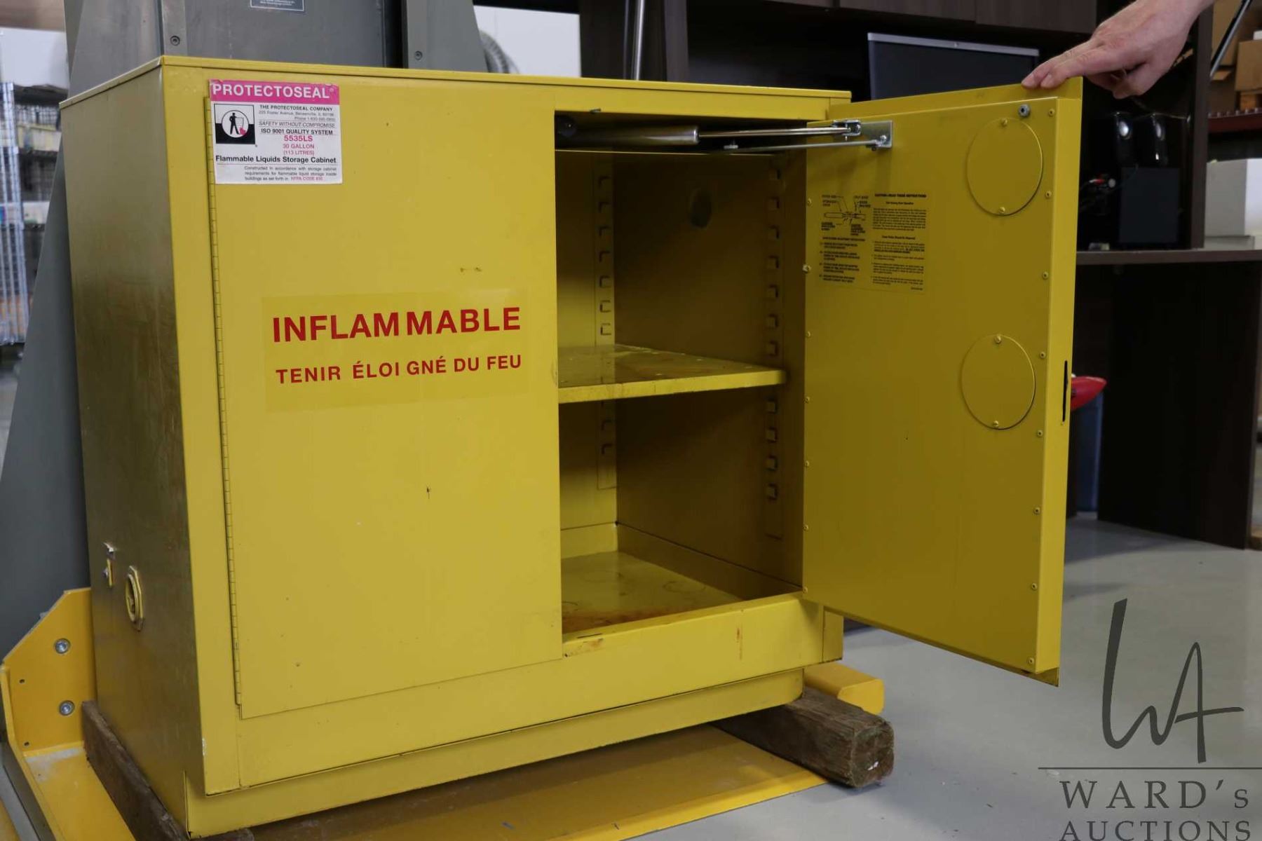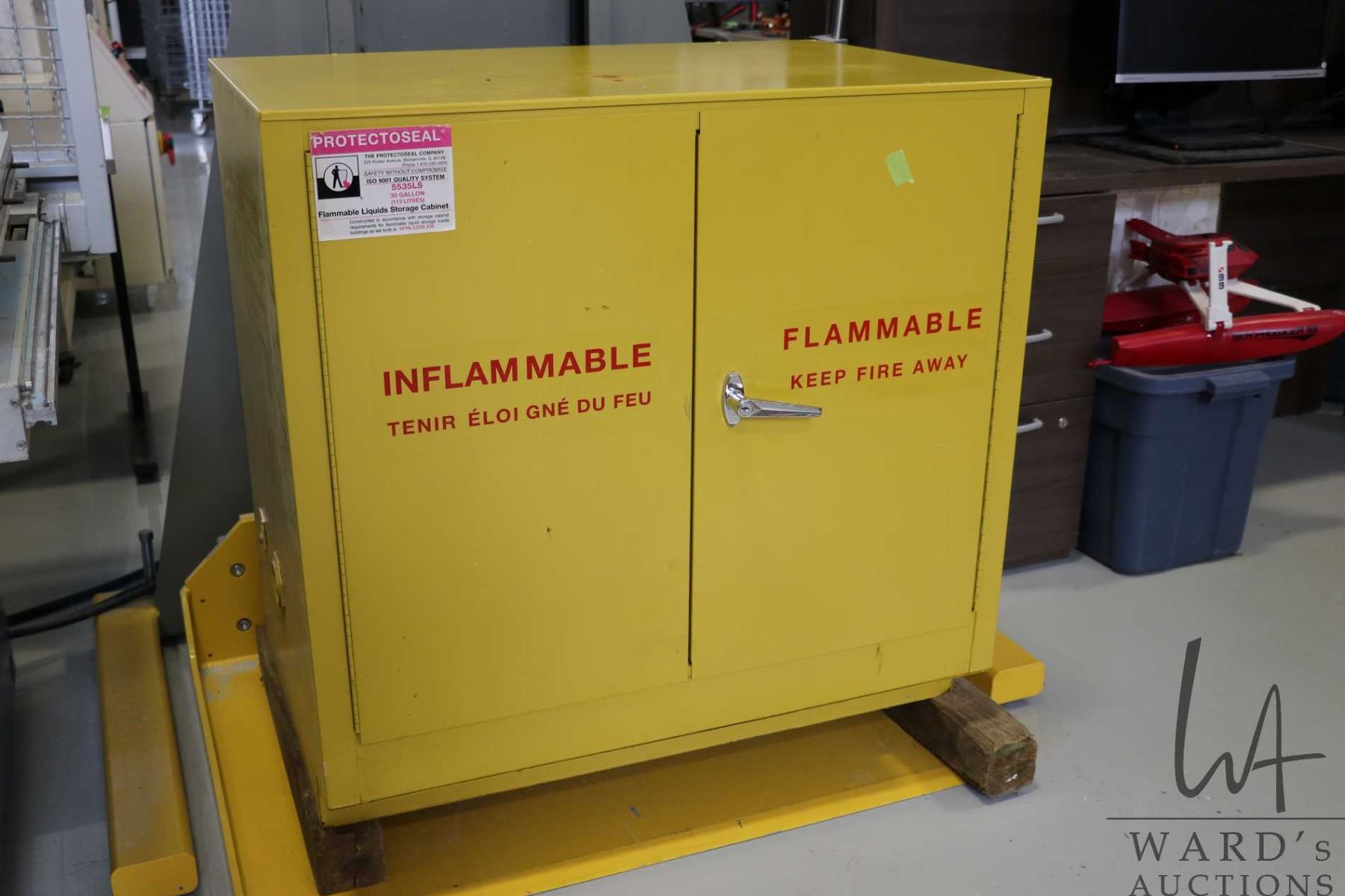 Lot 116 Two door flame resistant cabinet, 36"w x 37"h x 24"d. No key