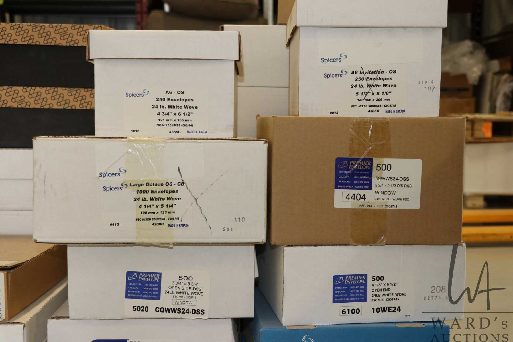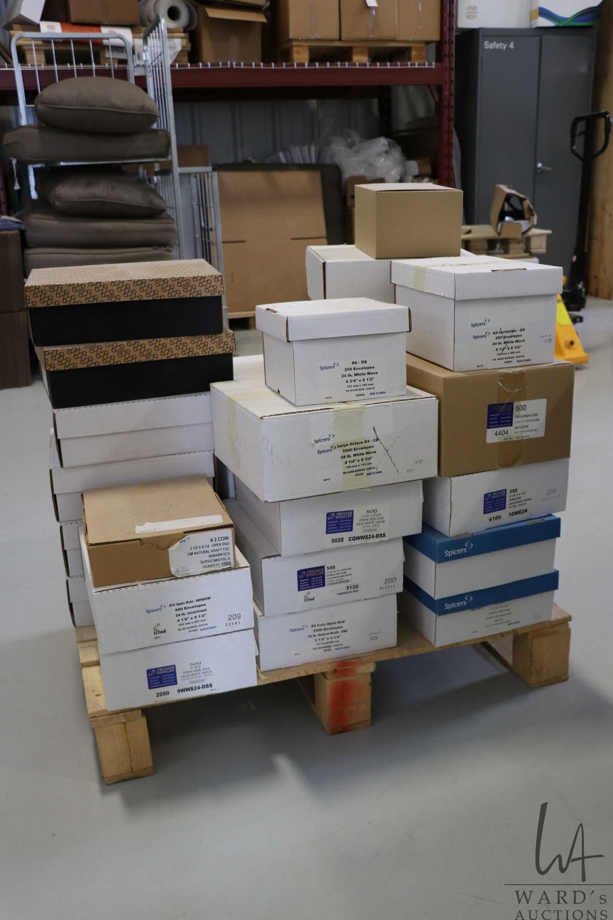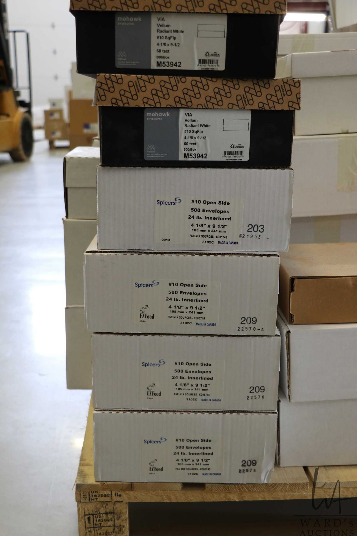 Lot 154 Pallet lot of envelopes. Pallet was wrapped and stacked after lotting, previewing by photos only.