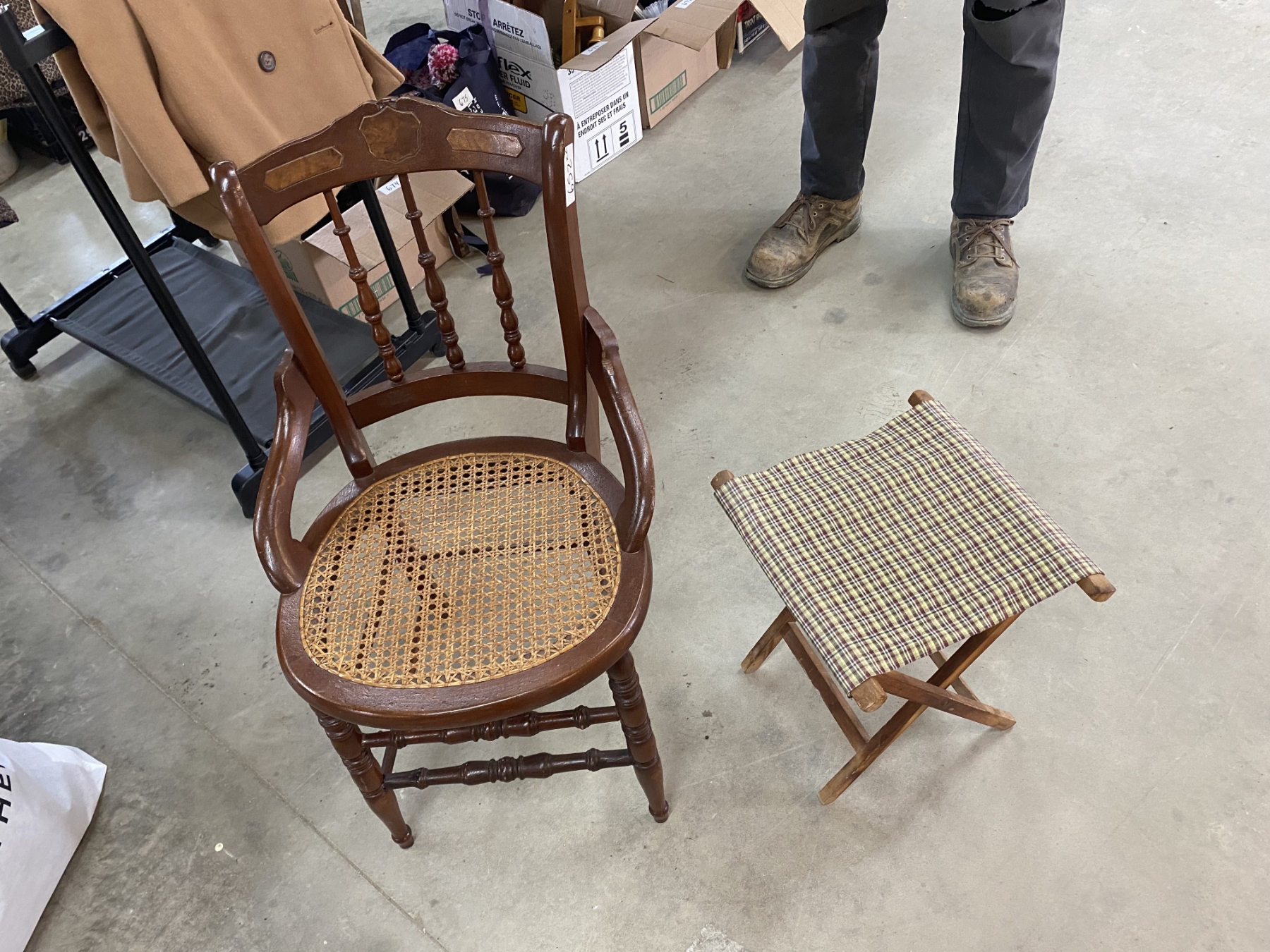 Lot 652 ANTIQUE CHAIR AND STOOL