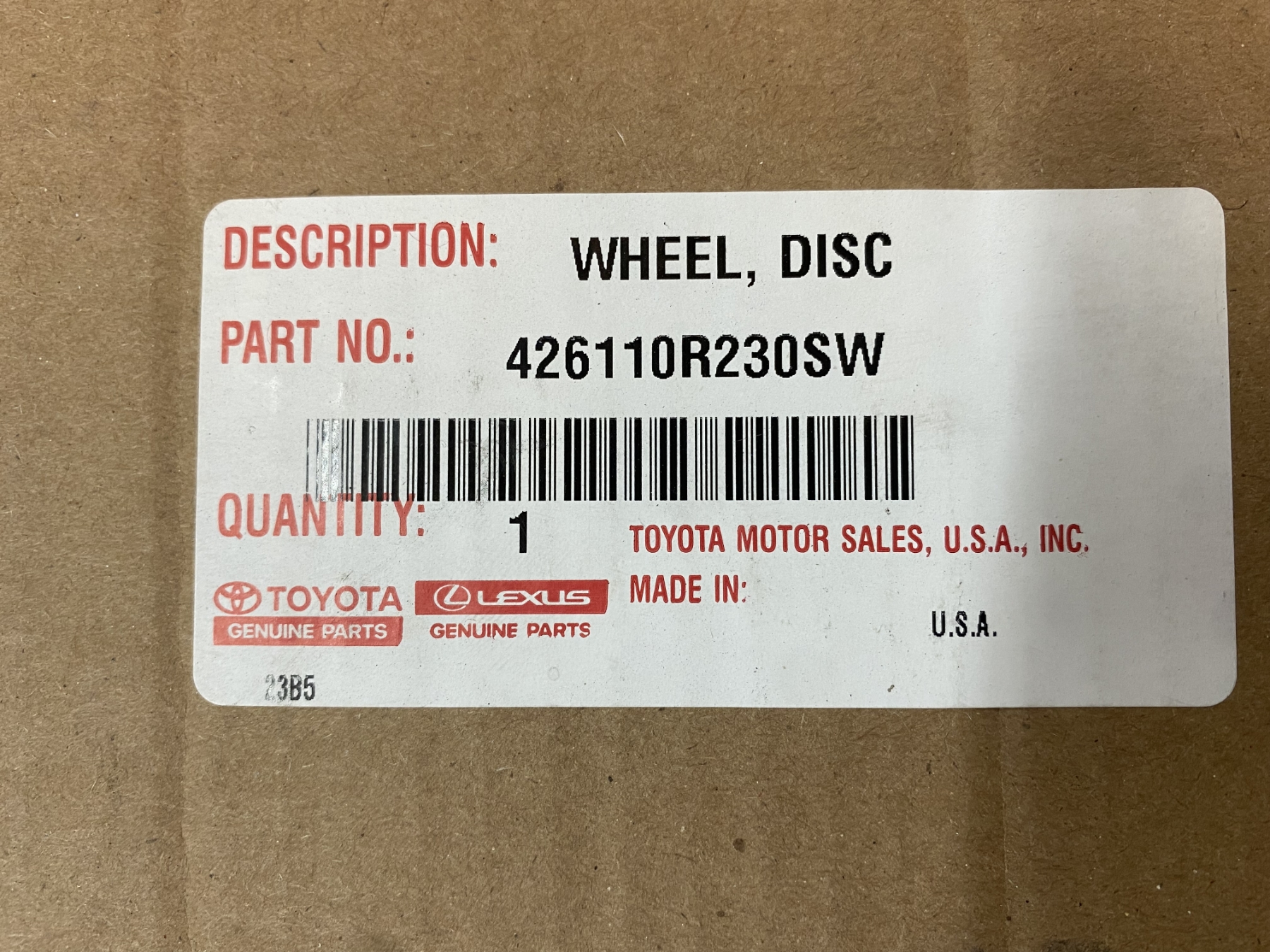 Lot 812 TOYOTA RIM - PART # IN PICTURE