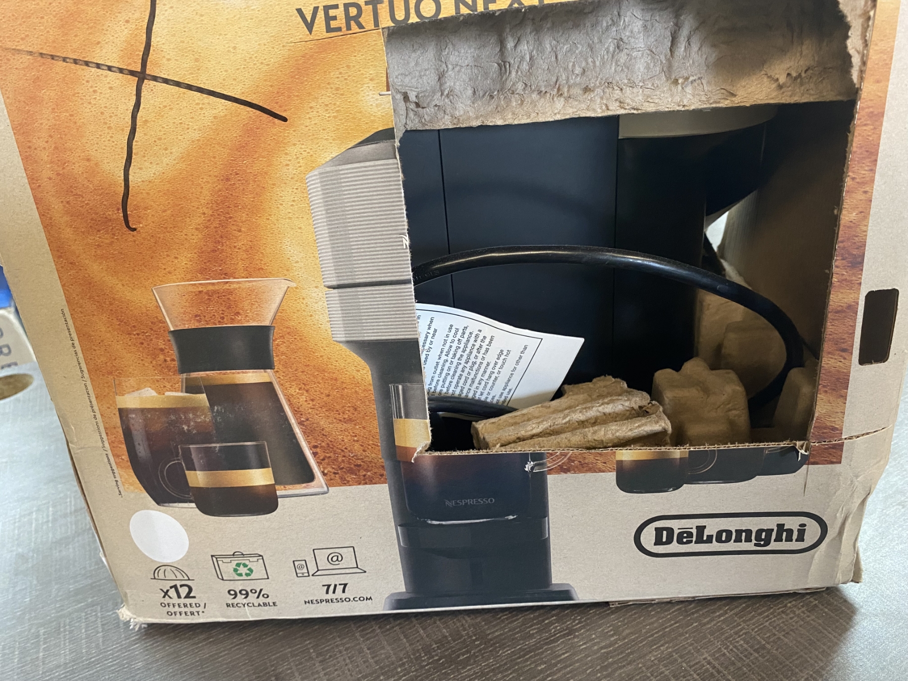 Lot 818 NESPRESSO MACHINE - BOX IS DAMAGED BUT LOOKS OKAY