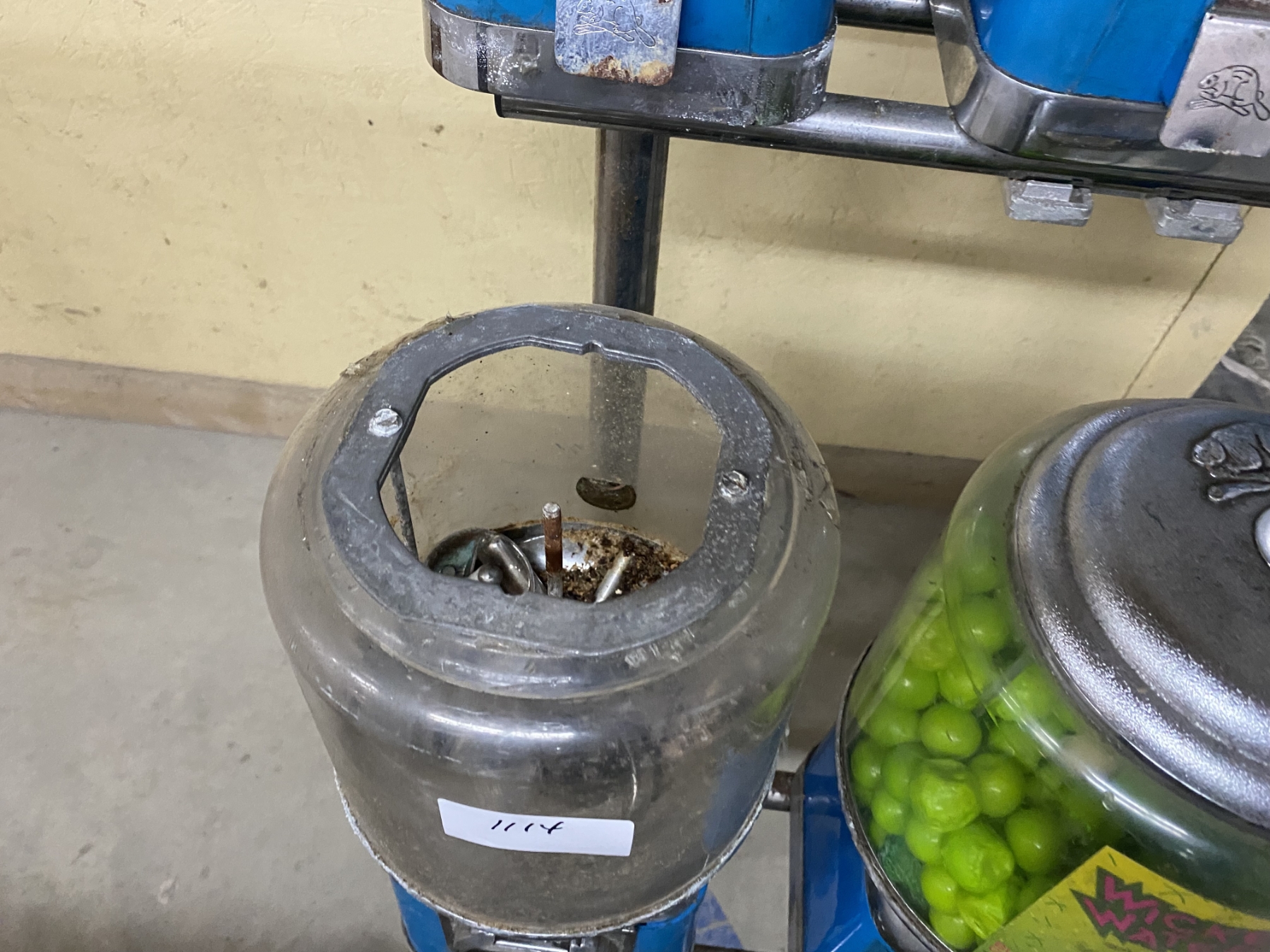 Lot 1114 VERY USED CANDY MACHINE - PLEASE DONT TRY CONTENTS -AGED