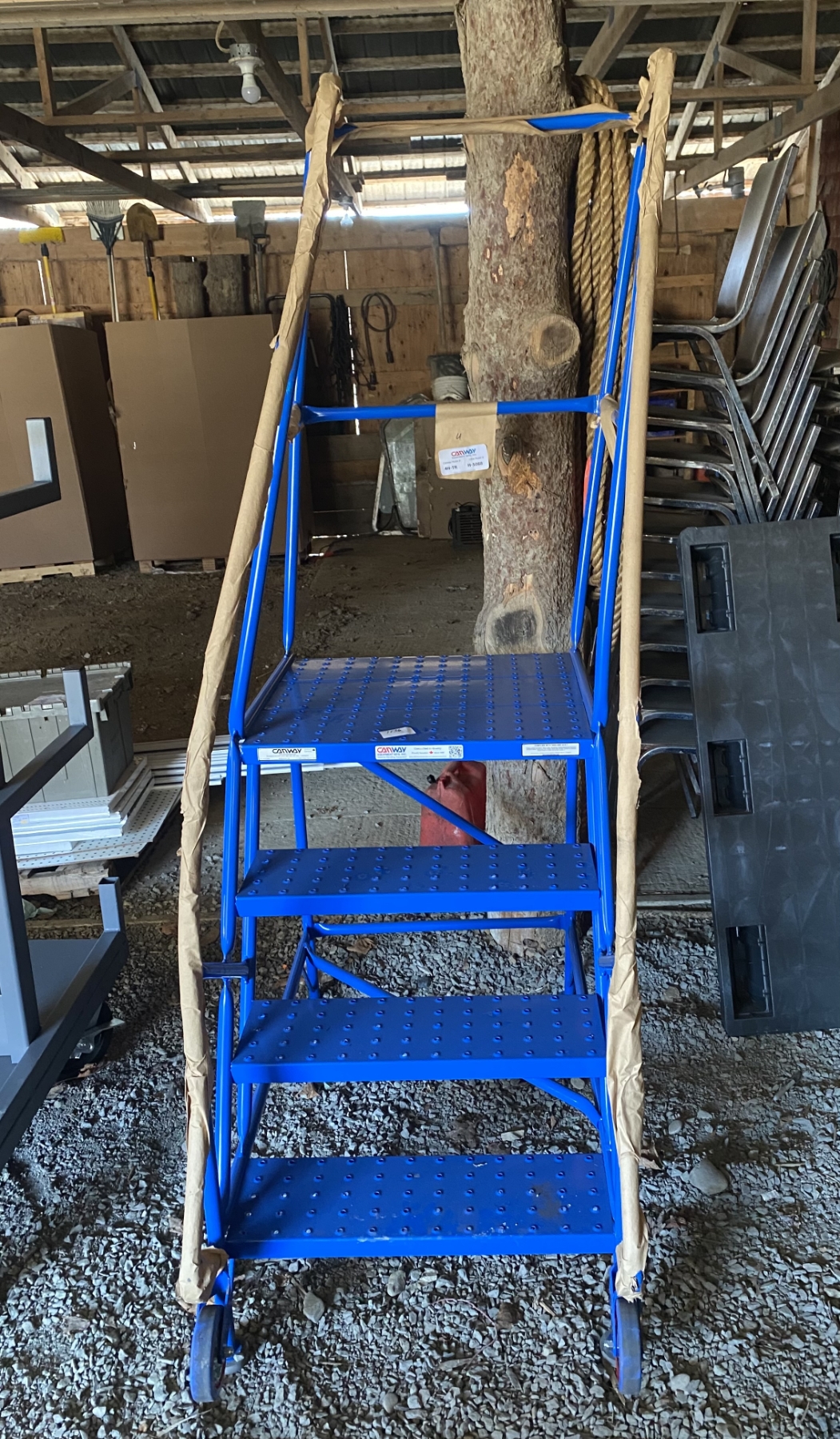 Lot 1136 SET OF 4FT STEEL STEPS- TOP RAIL BENT BUT COULD EASILY BE STRAIGHTENED